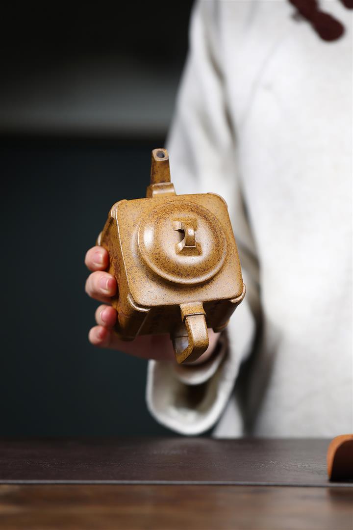 240cc古龍窯柴燒龍骨金砂四方刻竹泡茶壺POT9631