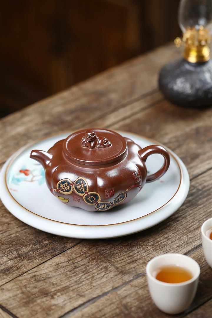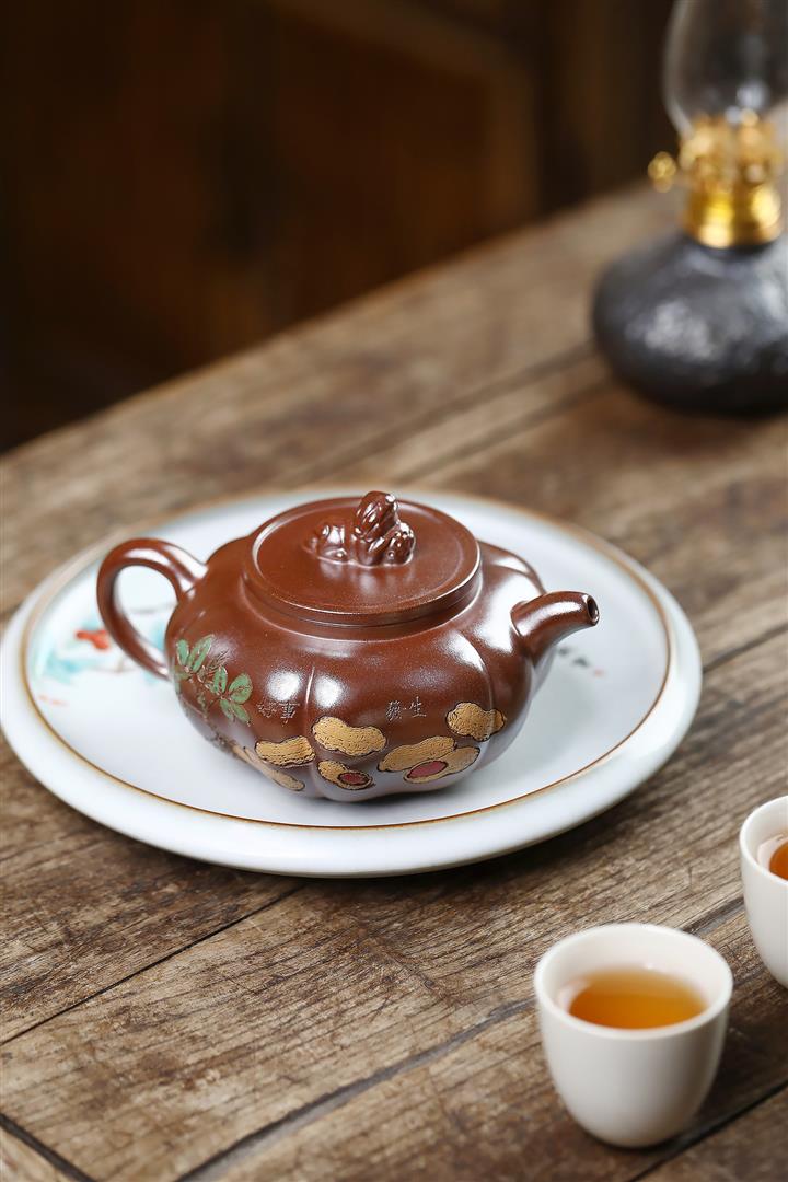 原礦底槽清手工灑金玉環茶壺POT6762