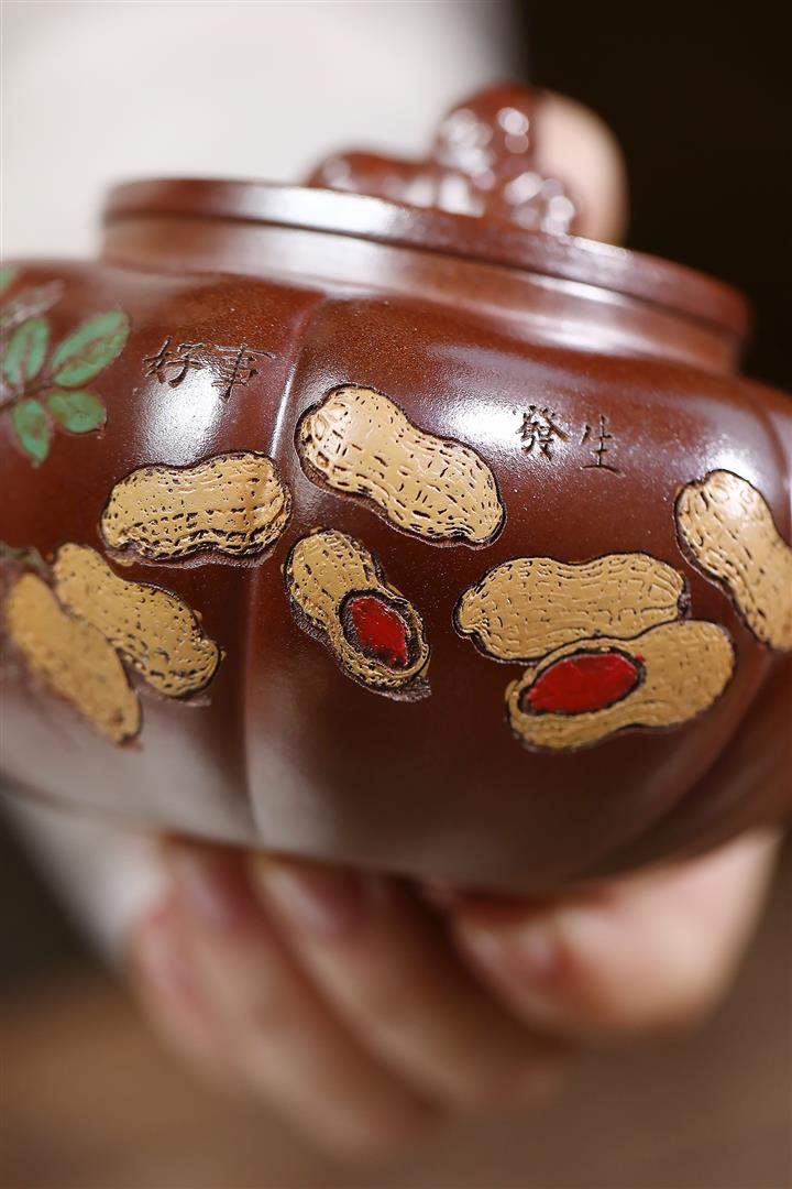 原礦紫朱泥手工描金漁翁茶壺POT6764