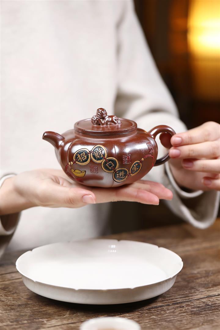 【作品介紹】此款壺形線條流暢,壺把,壺嘴,壺身壹氣呵成栩栩如生,是收藏把玩的好壺,泥料色澤古樸典雅,日久使用,漸露鋒芒,養成變化快,溫潤莊重,用其泡茶,使用的年代久,壺身就溫潤,泡出來的茶湯也就醇郁芳馨。