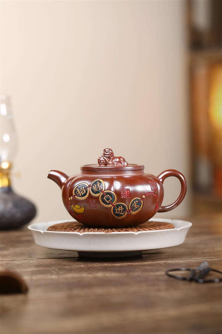 270cc原礦段泥火焰燒招財進寶-獅球泡茶壺POT9645