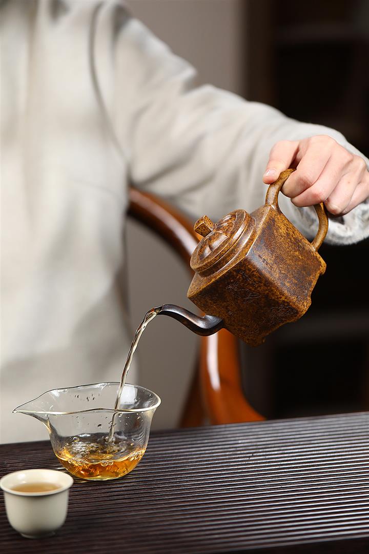 【泥料特點】砂土氣重,似淳實農民,日久使用,漸露鋒芒,養成變化,溫潤莊重。紫砂是壹種雙重氣孔結構的多孔性材質,氣孔微細,密度高。用紫砂壺沏茶,不失原味,且香不渙散,得茶之真香真味。紫砂使用越久,壺身色澤越發光亮照人,氣韻溫雅。紫砂壺長久使用器身會因撫摸擦拭,變得越發溫潤光澤。