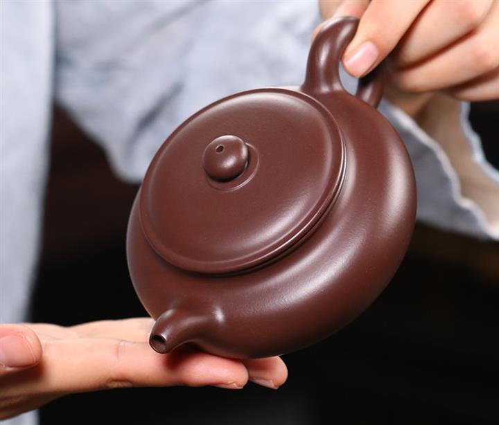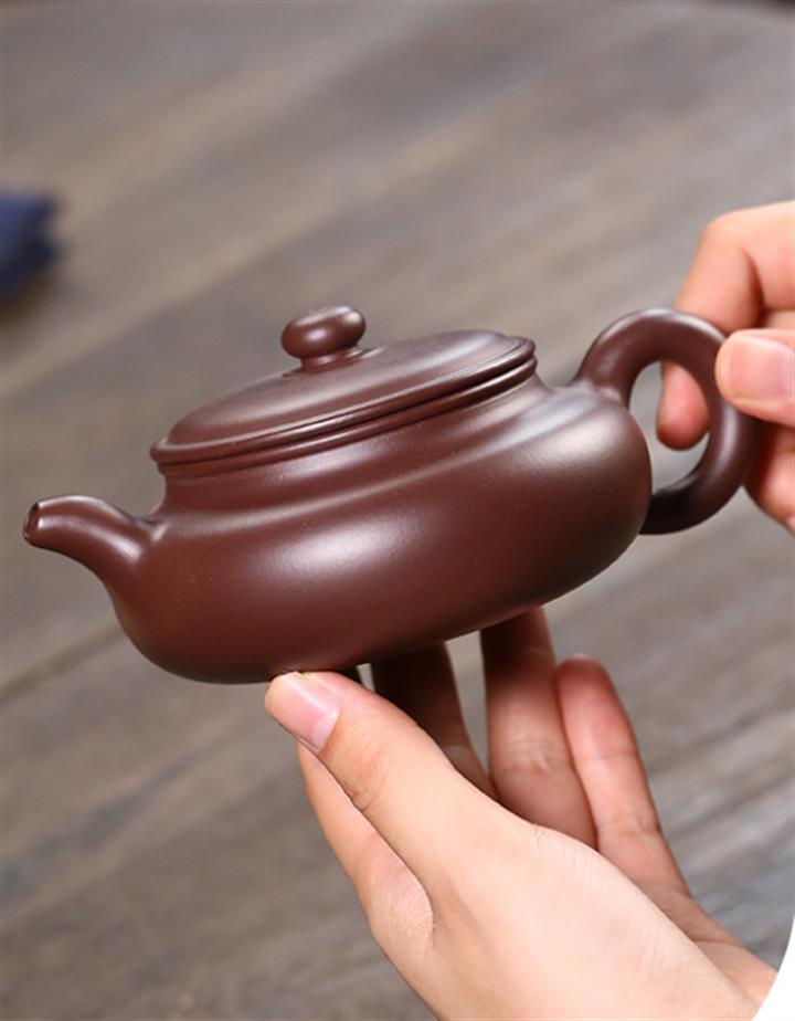 220cc原礦紫朱泥扁腹泡茶壺POT9778
