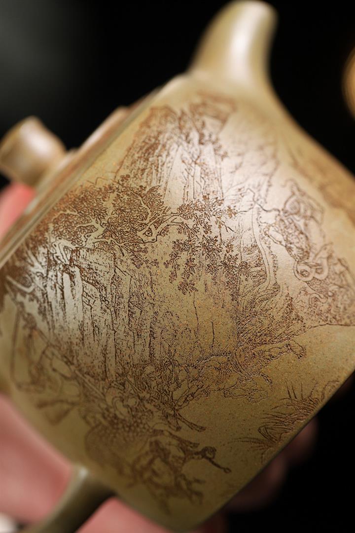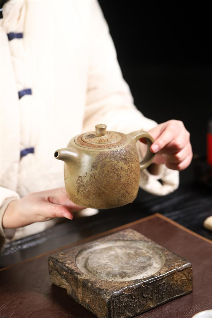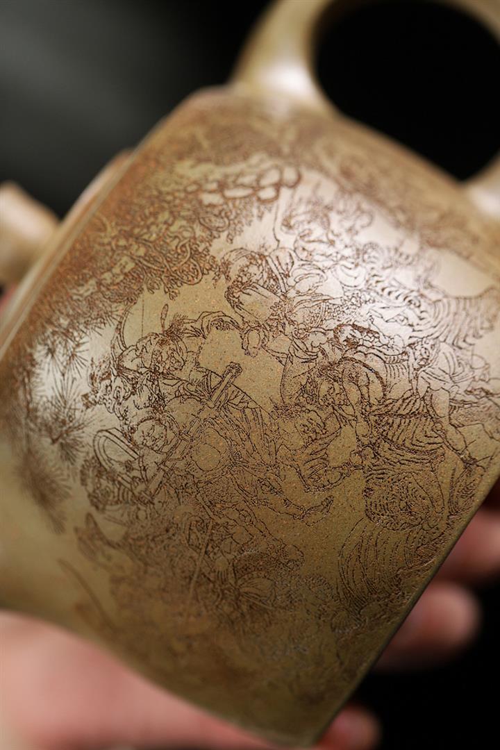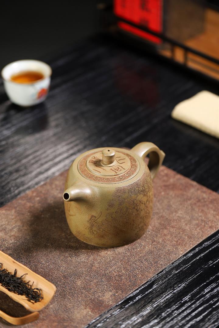 原礦龍血砂手工滿刻蒼松茶壺POT7143