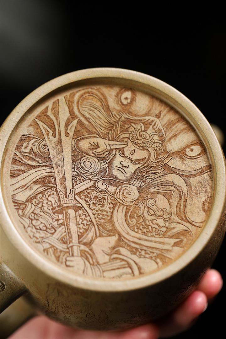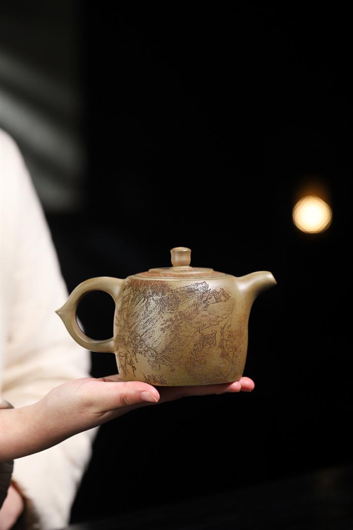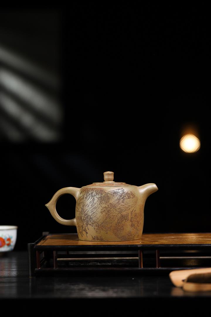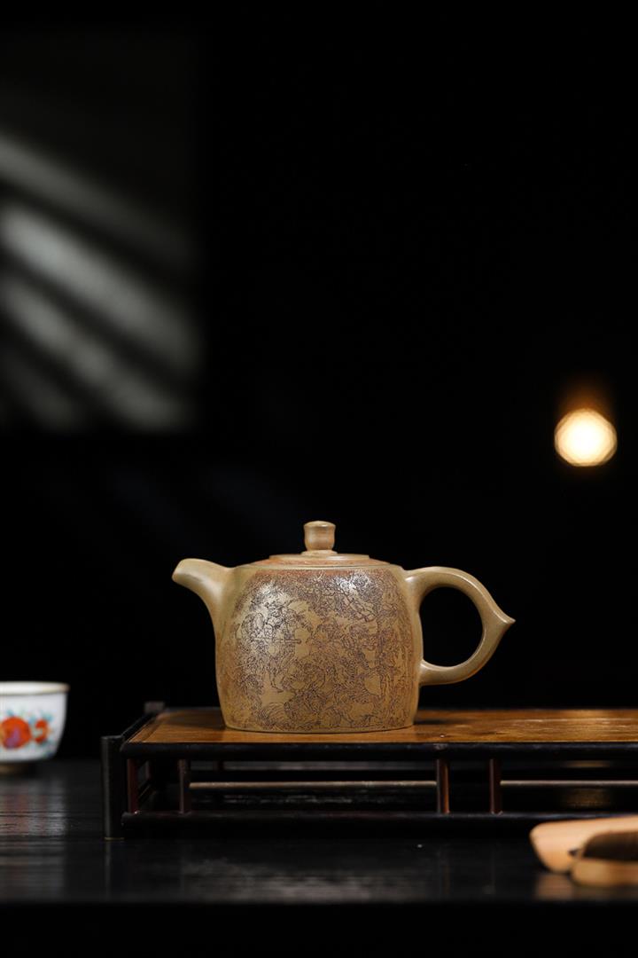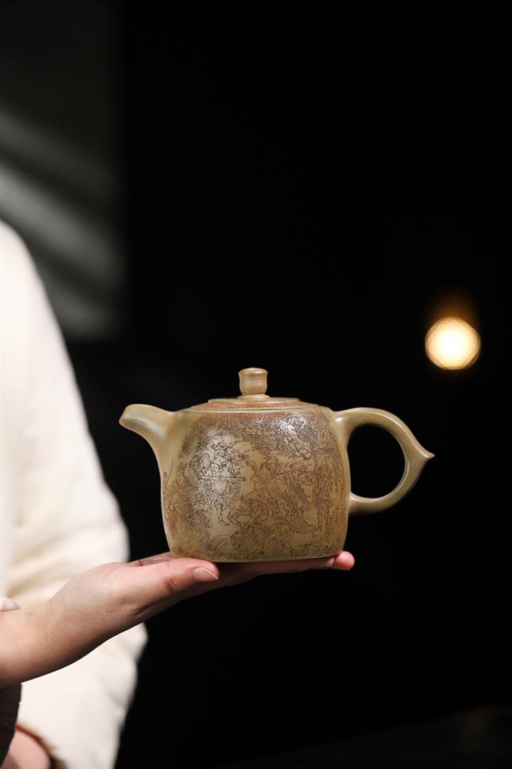 原礦龍血砂手工滿刻蒼松茶壺POT7143