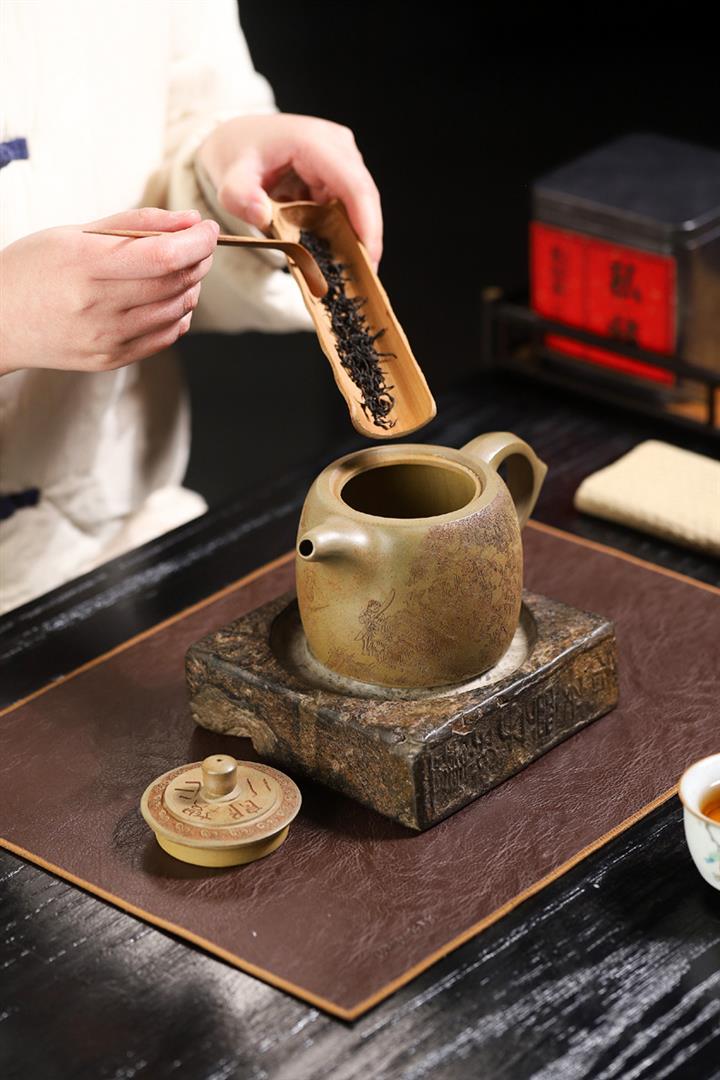 原礦綠泥手工制唐羽茶壺POT7148