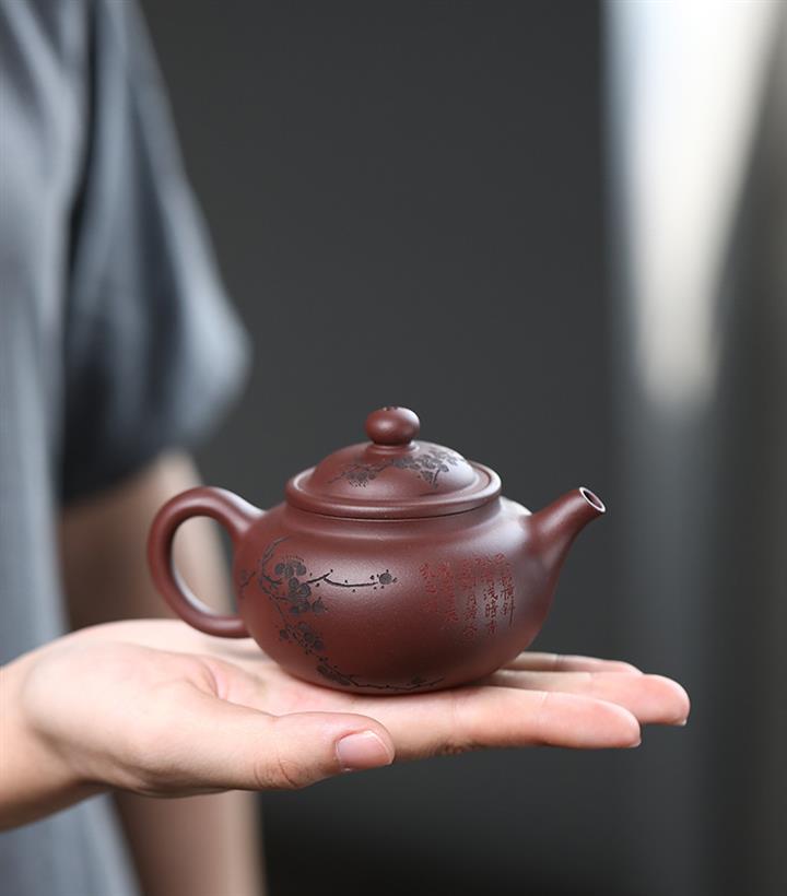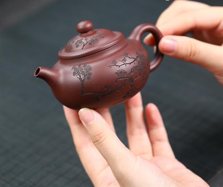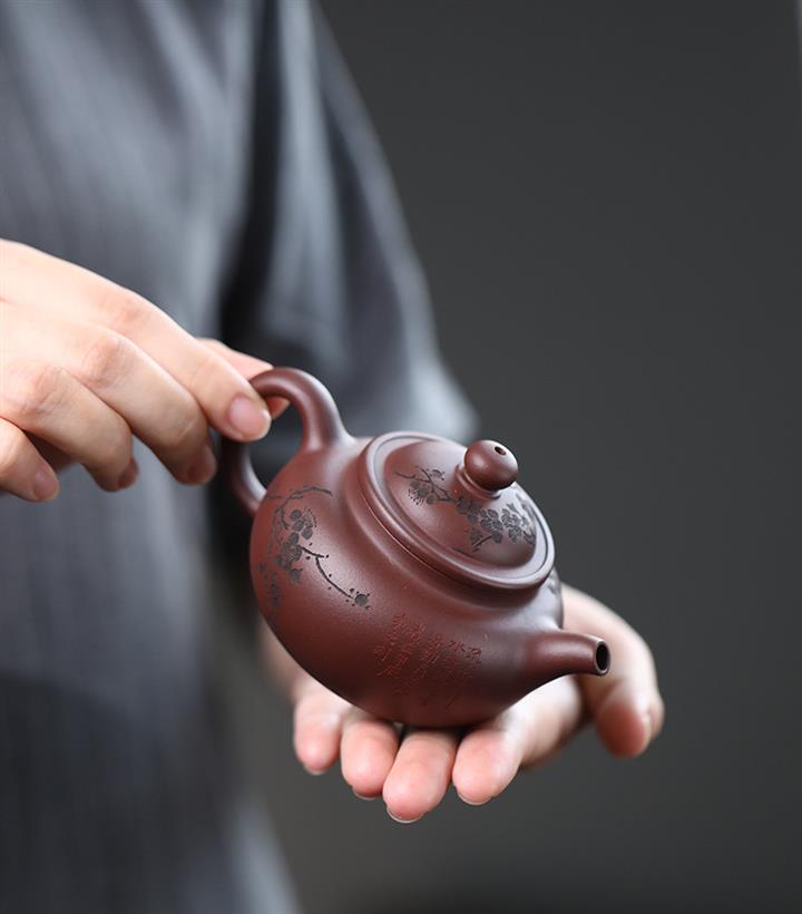 【泥料特點】砂土氣重,似淳實農民,日久使用,漸露鋒芒,養成變化,溫潤莊重。紫砂是壹種雙重氣孔結構的多孔性材質,氣孔微細,密度高。用紫砂壺沏茶,不失原味,且香不渙散,得茶之真香真味。紫砂使用越久,壺身色澤越發光亮照人,氣韻溫雅。紫砂壺長久使用器身會因撫摸擦拭,變得越發溫潤光澤。