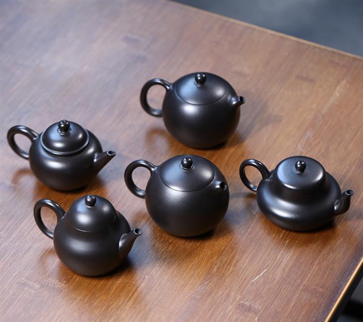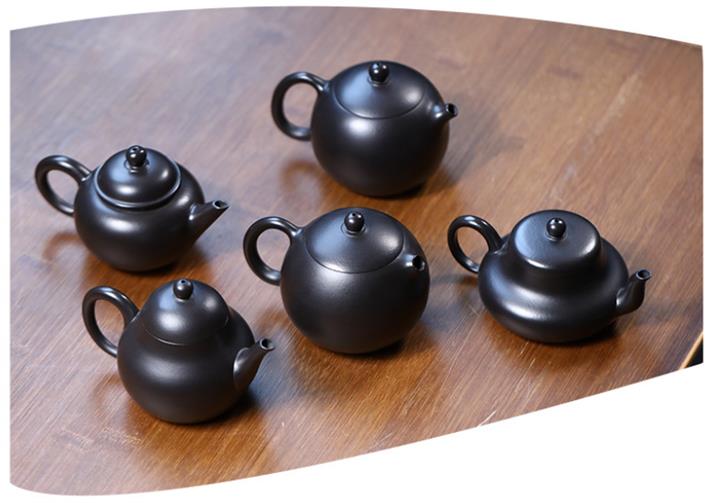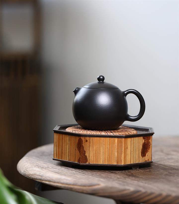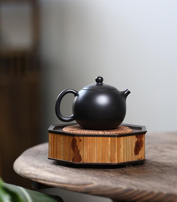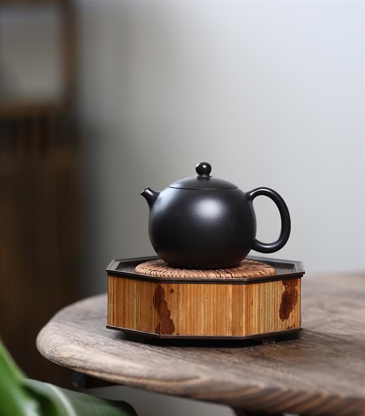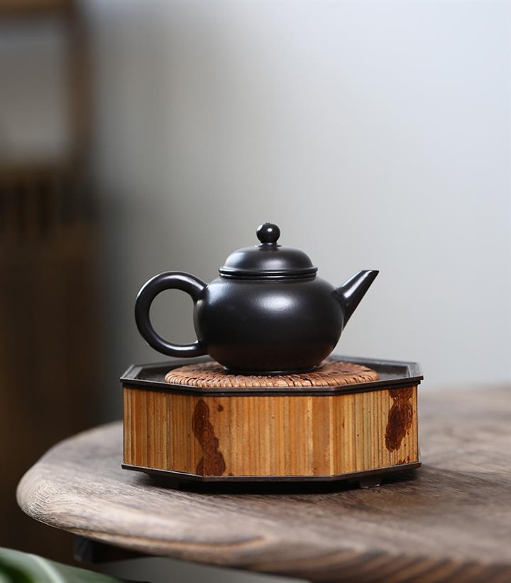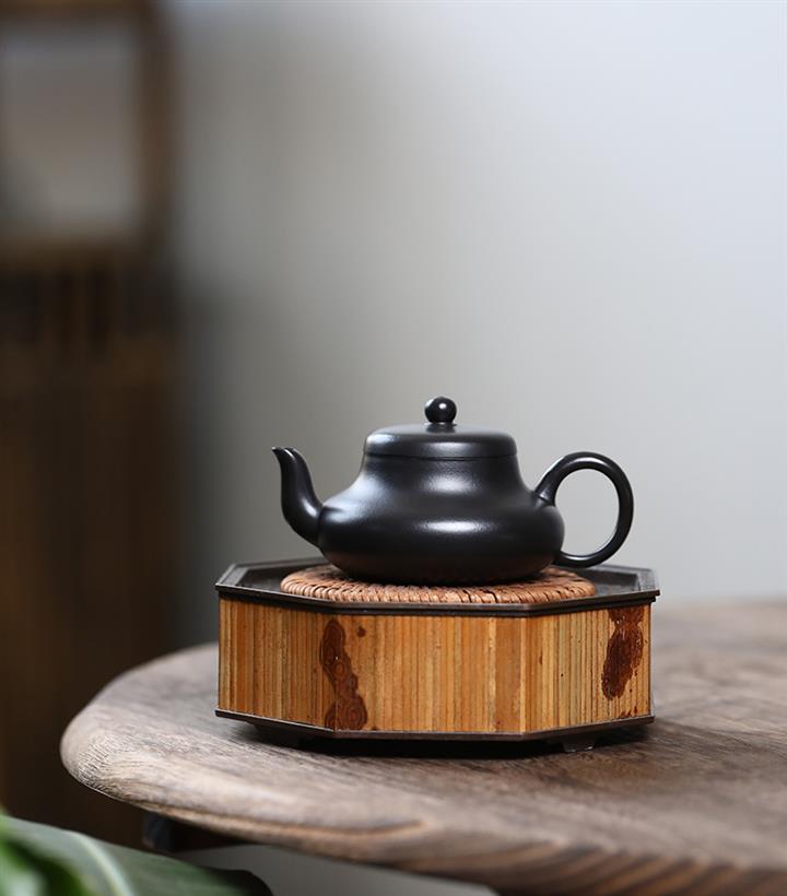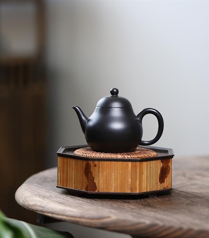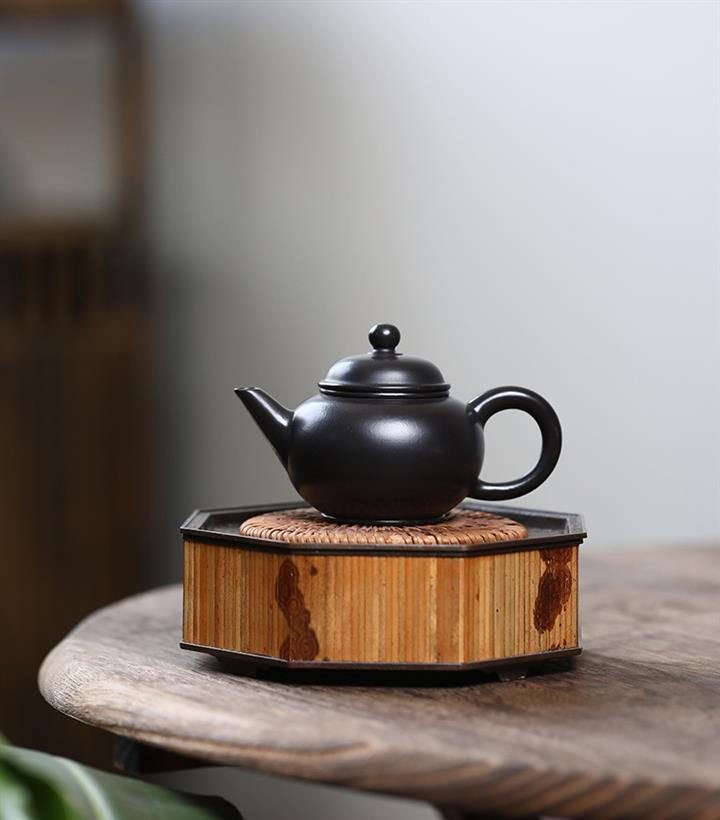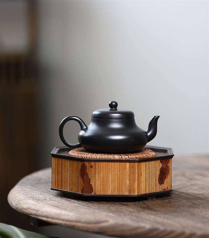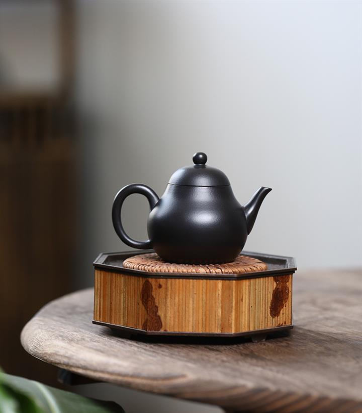 300cc原礦黑料六方金鐘滿彩刻長城泡茶壺POT9517