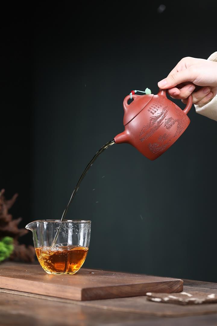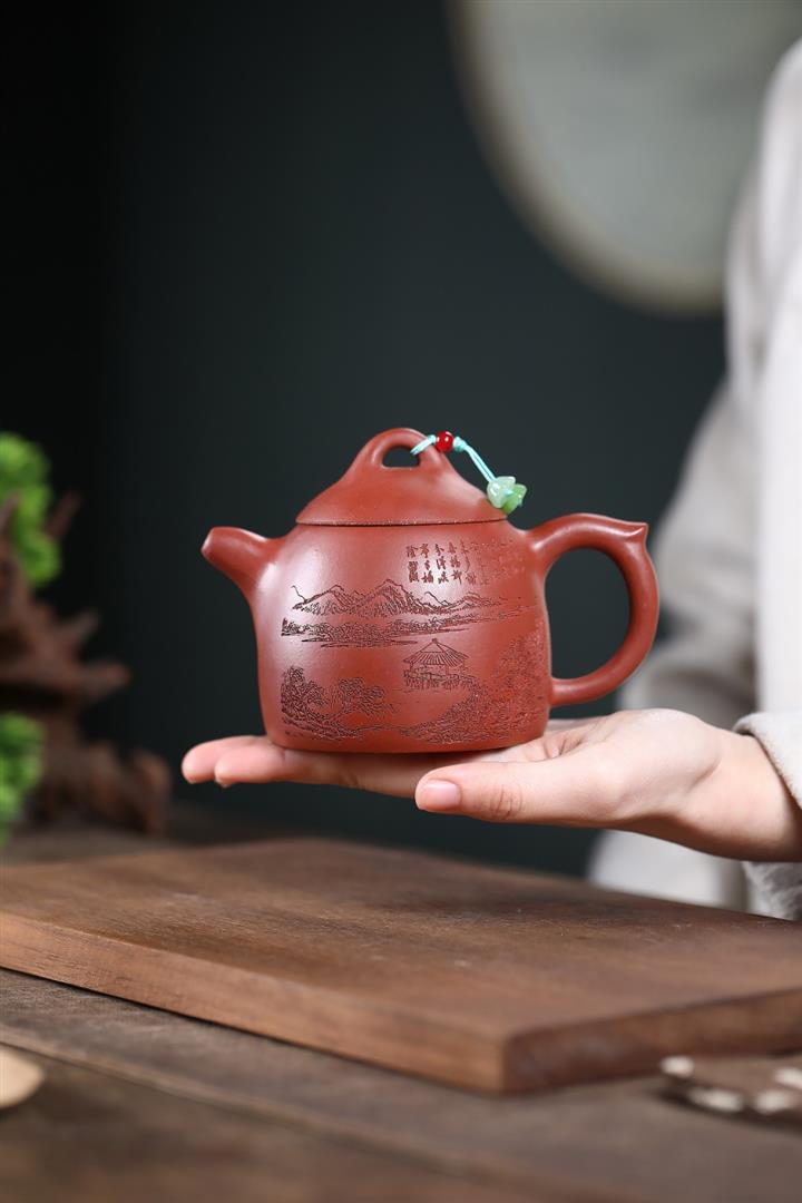 【泥料特點】砂土氣重,似淳實農民,日久使用,漸露鋒芒,養成變化,溫潤莊重。紫砂是壹種雙重氣孔結構的多孔性材質,氣孔微細,密度高。用紫砂壺沏茶,不失原味,且香不渙散,得茶之真香真味。紫砂使用越久,壺身色澤越發光亮照人,氣韻溫雅。紫砂壺長久使用器身會因撫摸擦拭,變得越發溫潤光澤。