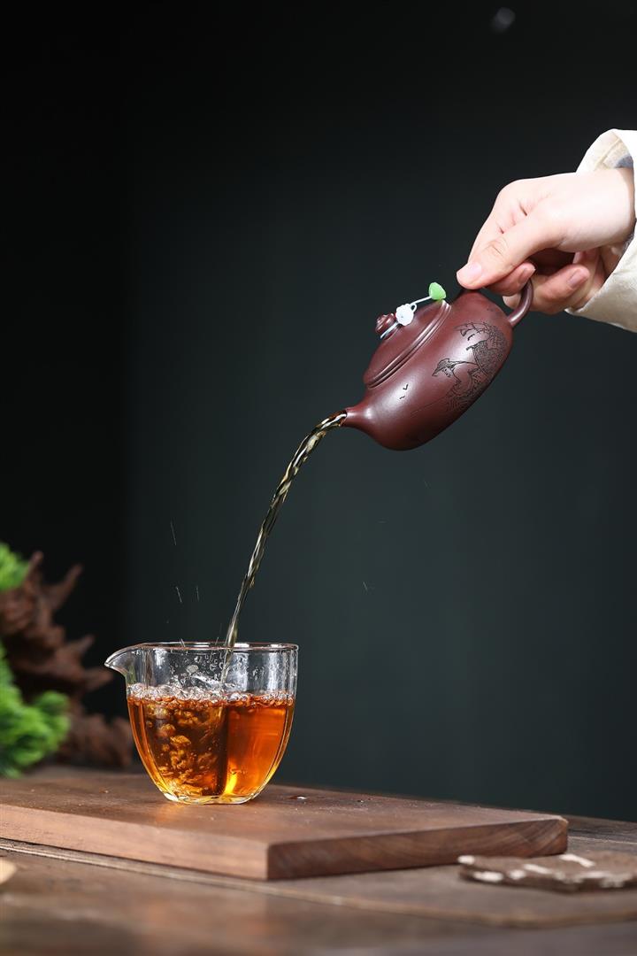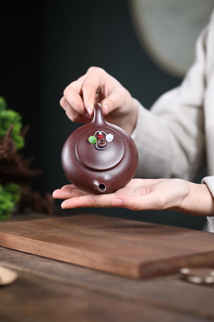 【泥料特點】砂土氣重,似淳實農民,日久使用,漸露鋒芒,養成變化,溫潤莊重。紫砂是壹種雙重氣孔結構的多孔性材質,氣孔微細,密度高。用紫砂壺沏茶,不失原味,且香不渙散,得茶之真香真味。紫砂使用越久,壺身色澤越發光亮照人,氣韻溫雅。紫砂壺長久使用器身會因撫摸擦拭,變得越發溫潤光澤。