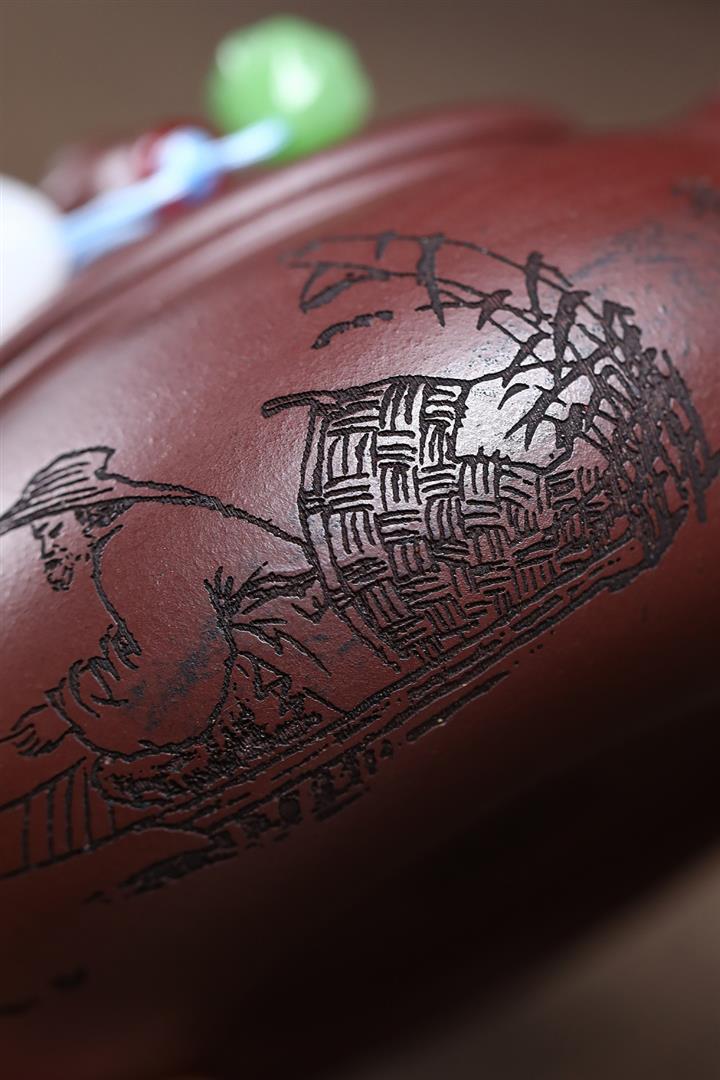 原礦龍血砂手工滿刻寶塔茶壺POT6768