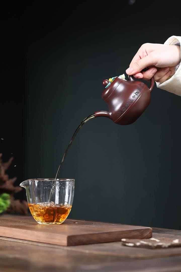 【泥料特點】砂土氣重,似淳實農民,日久使用,漸露鋒芒,養成變化,溫潤莊重。紫砂是壹種雙重氣孔結構的多孔性材質,氣孔微細,密度高。用紫砂壺沏茶,不失原味,且香不渙散,得茶之真香真味。紫砂使用越久,壺身色澤越發光亮照人,氣韻溫雅。紫砂壺長久使用器身會因撫摸擦拭,變得越發溫潤光澤。
