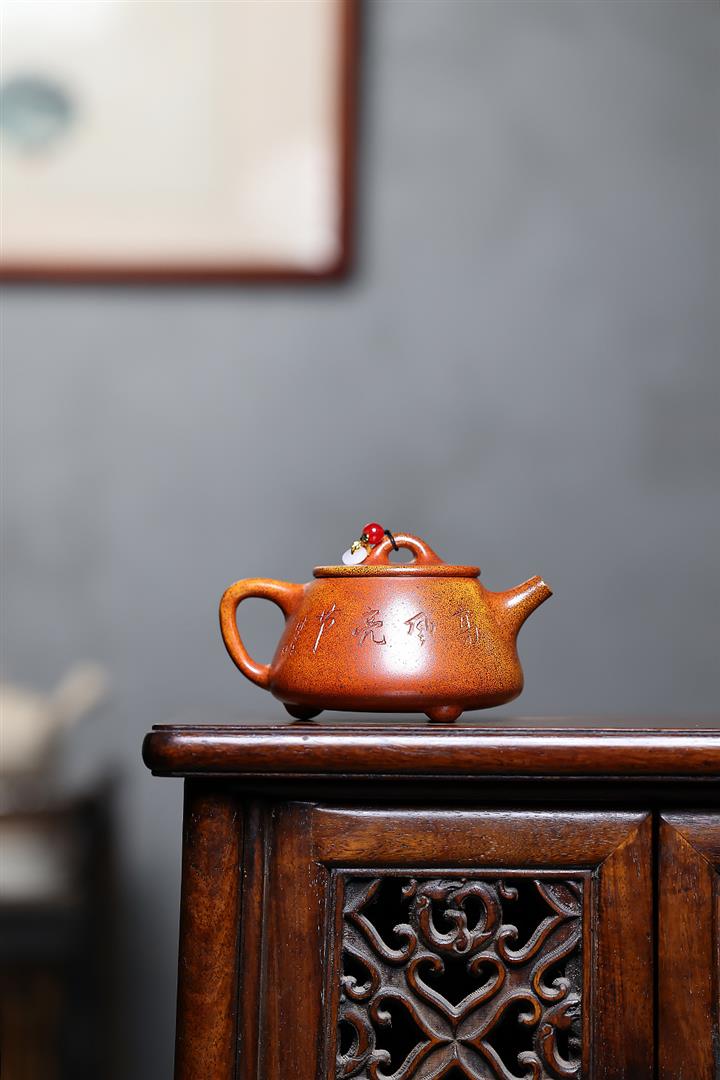 280cc原礦稀有紅皮龍四方如意茶壺POT8710