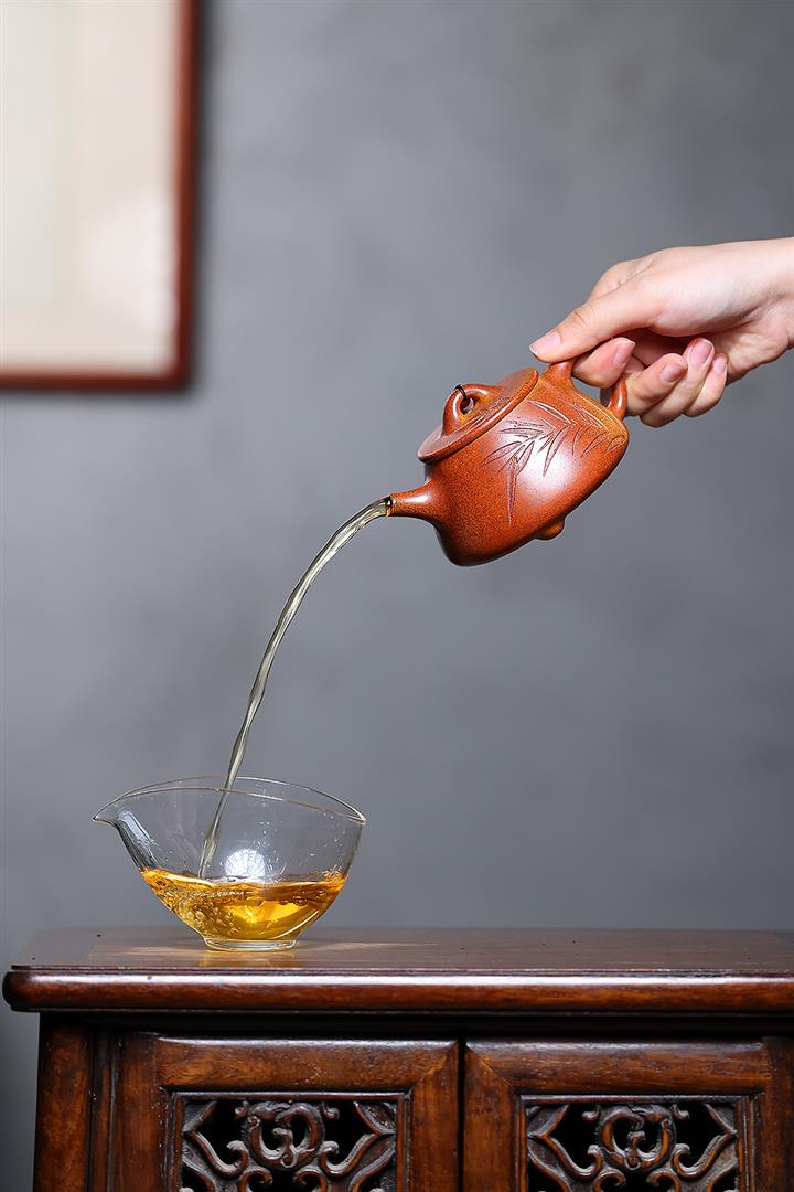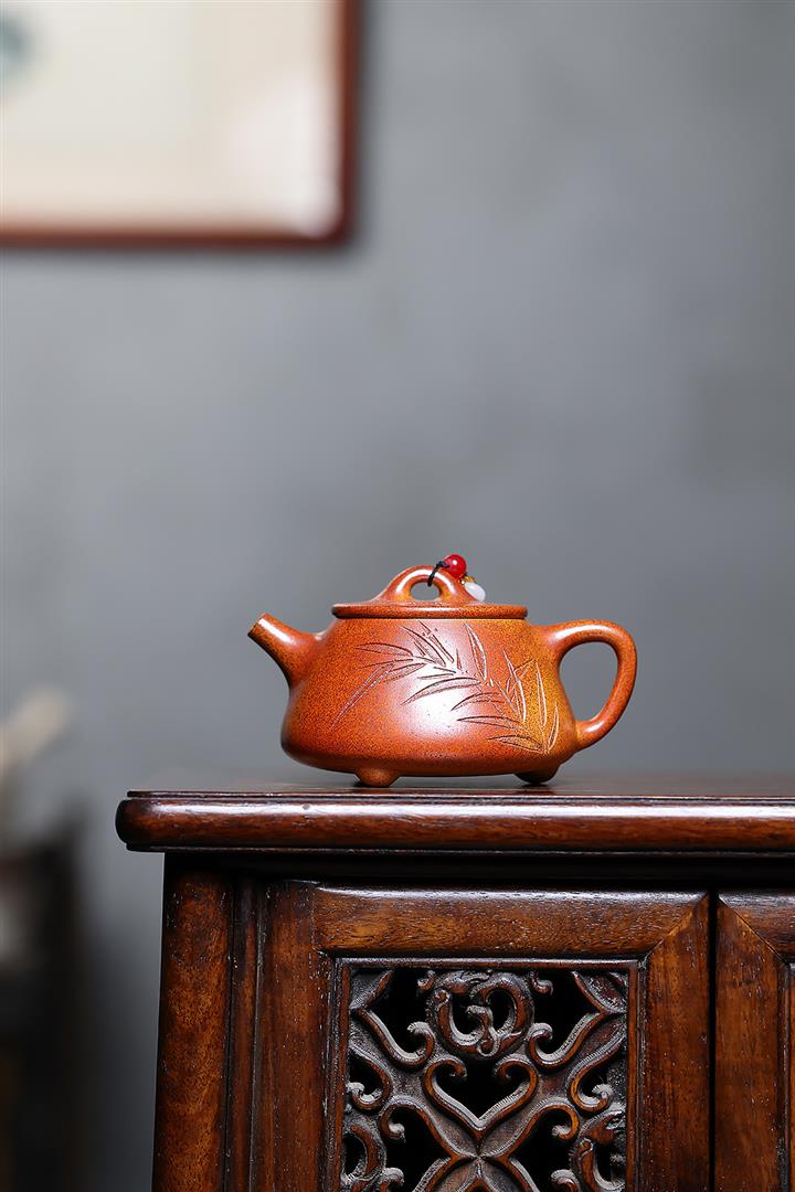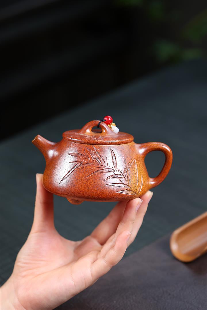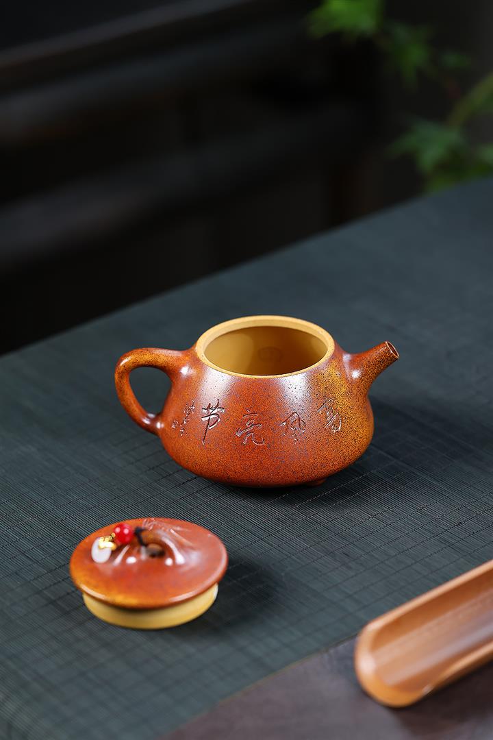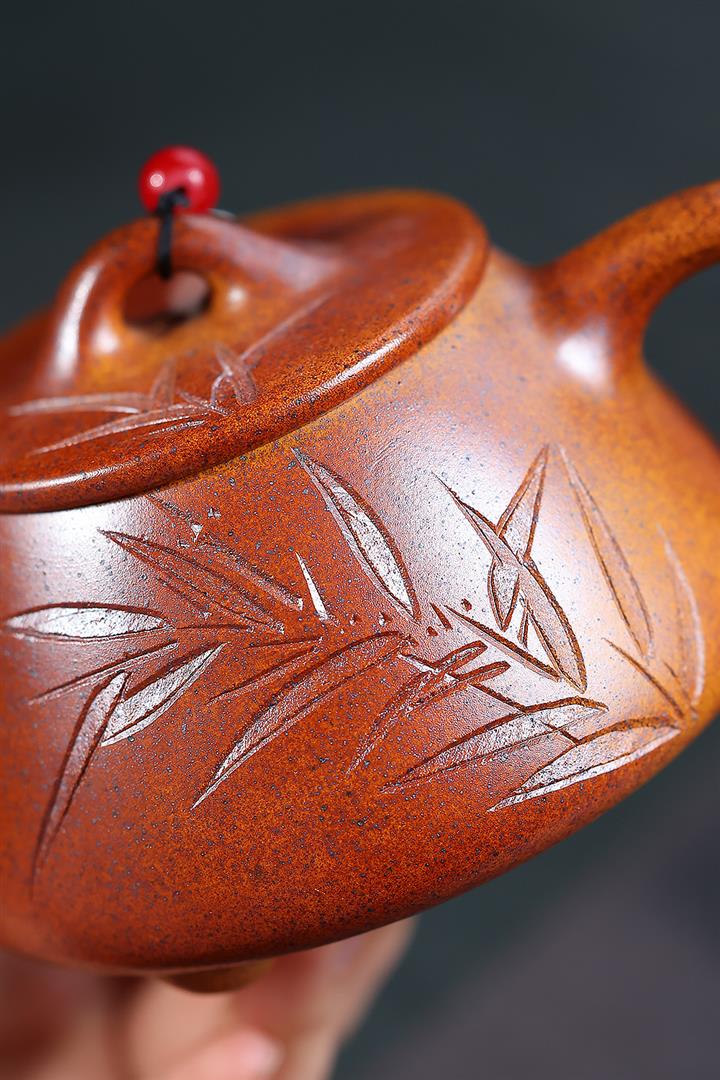 【作品介紹】此款壺形線條流暢,壺把,壺嘴,壺身壹氣呵成栩栩如生,是收藏把玩的好壺,泥料色澤古樸典雅,日久使用,漸露鋒芒,養成變化快,溫潤莊重,用其泡茶,使用的年代久,壺身就溫潤,泡出來的茶湯也就醇郁芳馨。