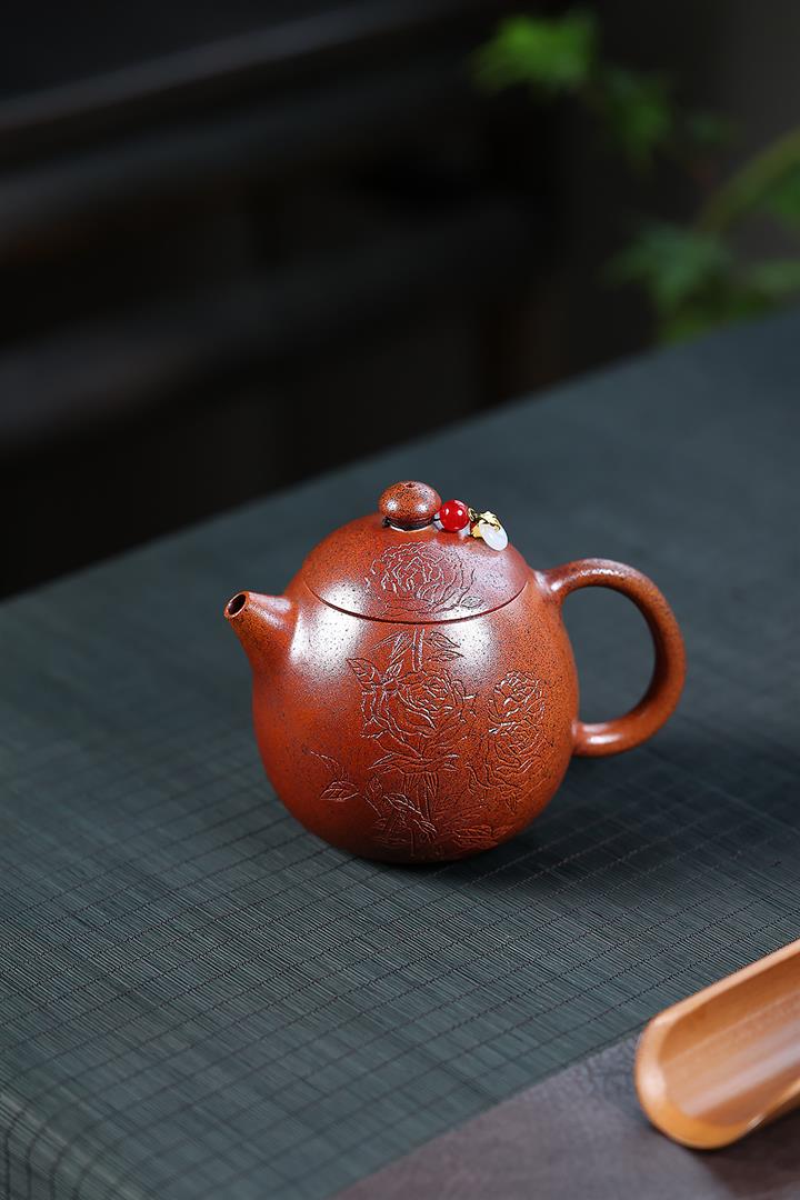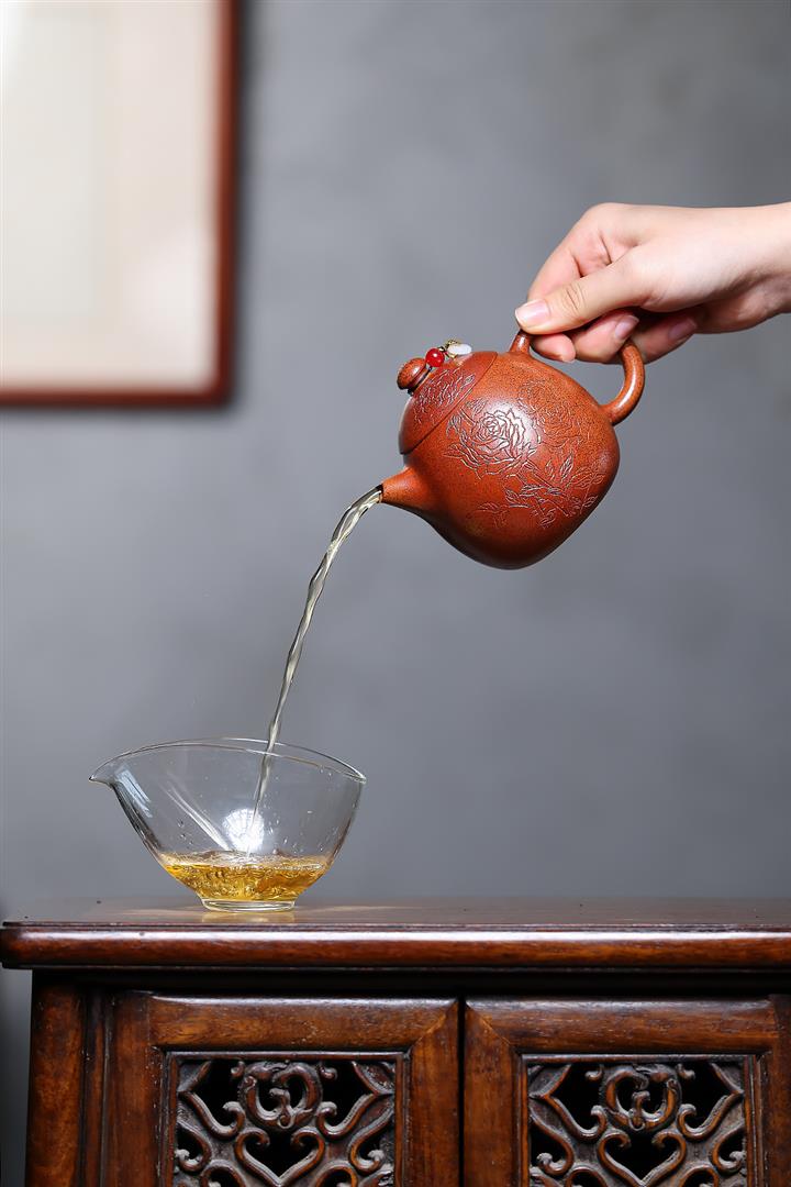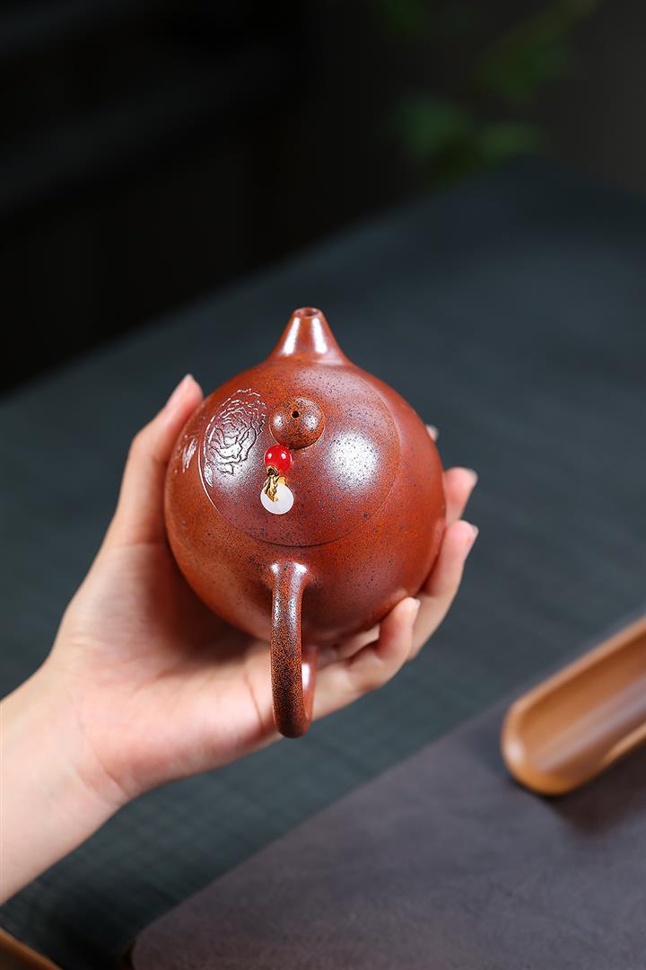【泥料特點】砂土氣重,似淳實農民,日久使用,漸露鋒芒,養成變化,溫潤莊重。紫砂是壹種雙重氣孔結構的多孔性材質,氣孔微細,密度高。用紫砂壺沏茶,不失原味,且香不渙散,得茶之真香真味。紫砂使用越久,壺身色澤越發光亮照人,氣韻溫雅。紫砂壺長久使用器身會因撫摸擦拭,變得越發溫潤光澤。