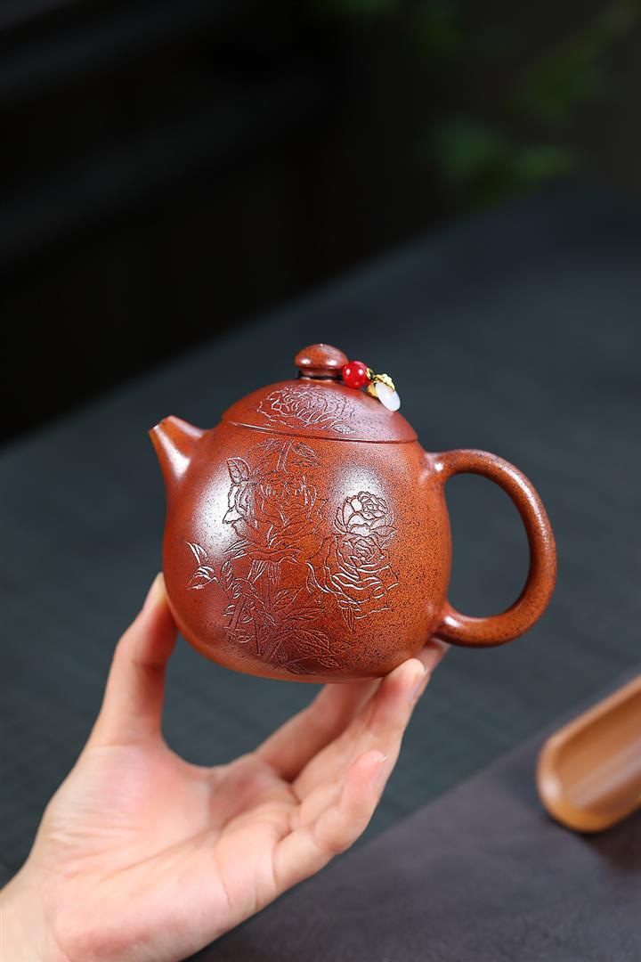 【作品介紹】此款壺形線條流暢,壺把,壺嘴,壺身壹氣呵成栩栩如生,是收藏把玩的好壺,泥料色澤古樸典雅,日久使用,漸露鋒芒,養成變化快,溫潤莊重,用其泡茶,使用的年代久,壺身就溫潤,泡出來的茶湯也就醇郁芳馨。