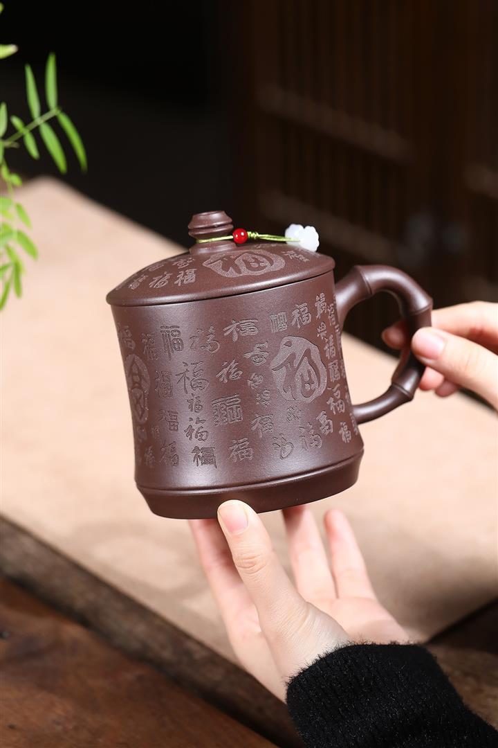 460cc原礦紫泥百福蓋杯茶杯POT10080