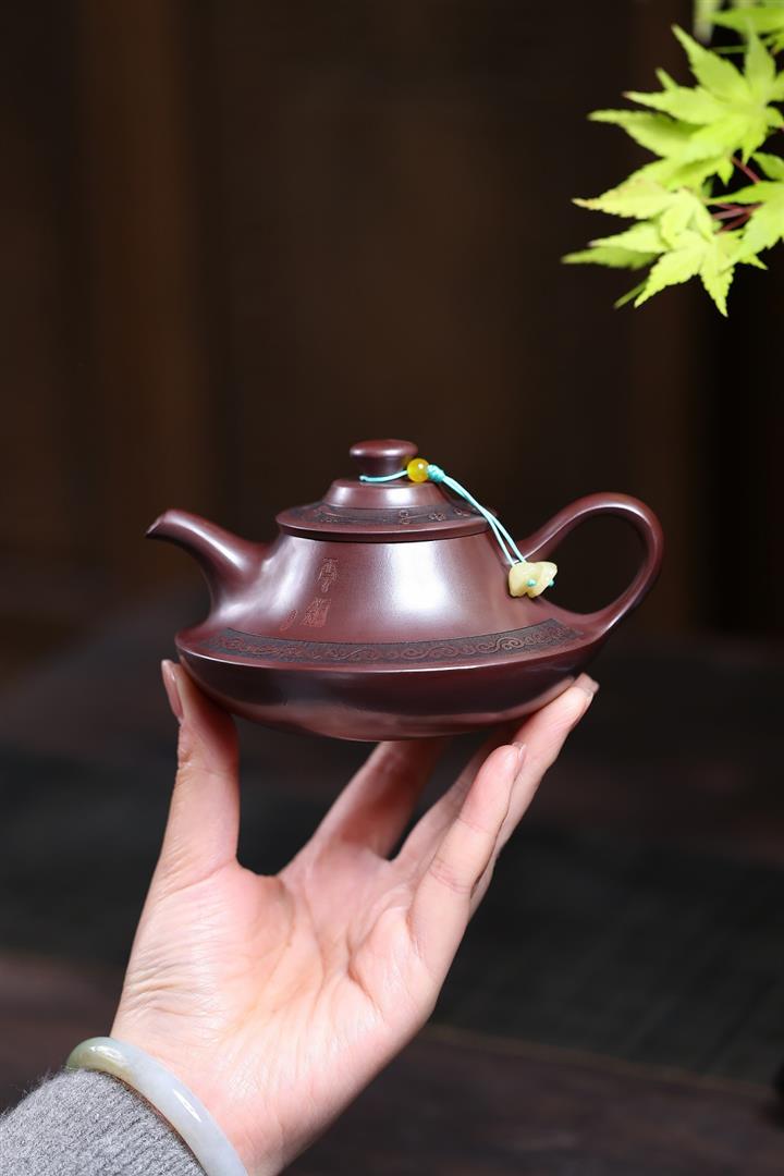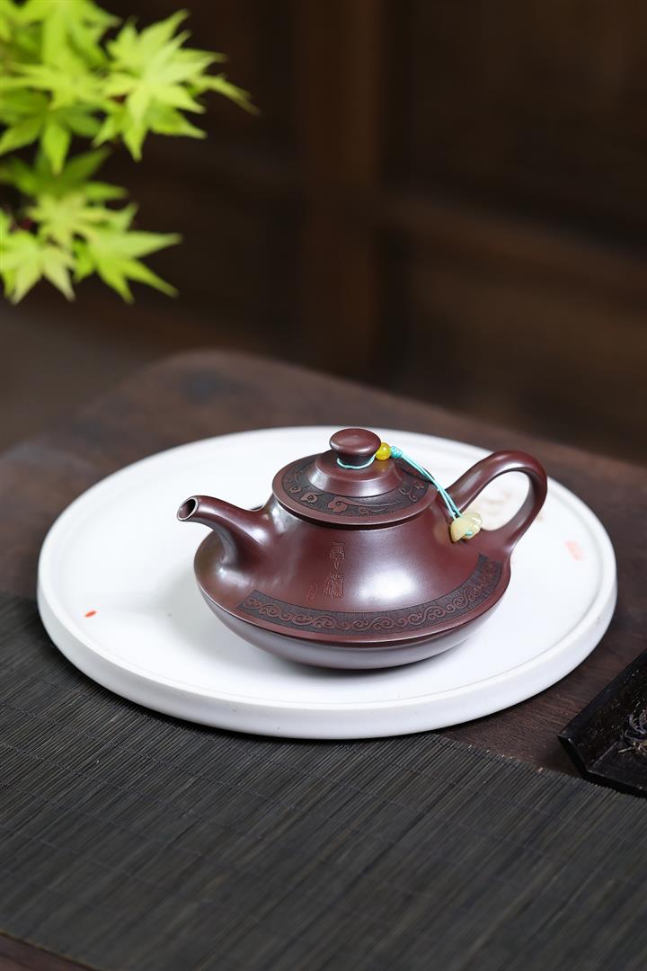 【作品介紹】此款壺形線條流暢,壺把,壺嘴,壺身壹氣呵成栩栩如生,是收藏把玩的好壺,泥料色澤古樸典雅,日久使用,漸露鋒芒,養成變化快,溫潤莊重,用其泡茶,使用的年代久,壺身就溫潤,泡出來的茶湯也就醇郁芳馨。