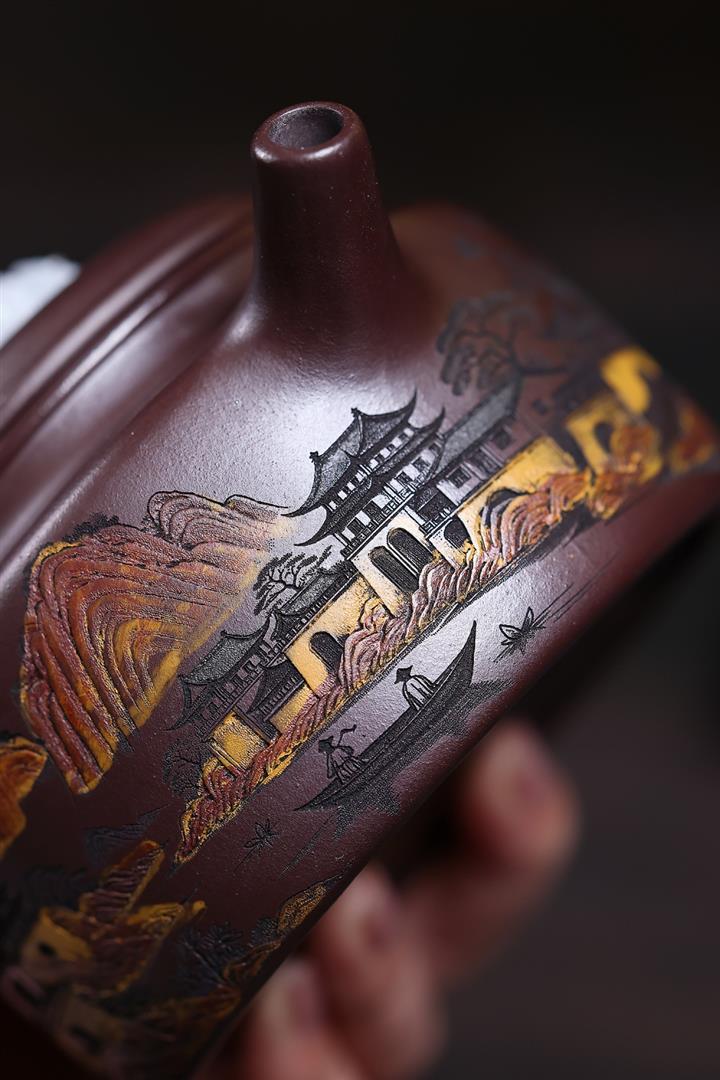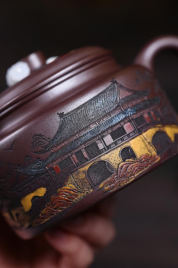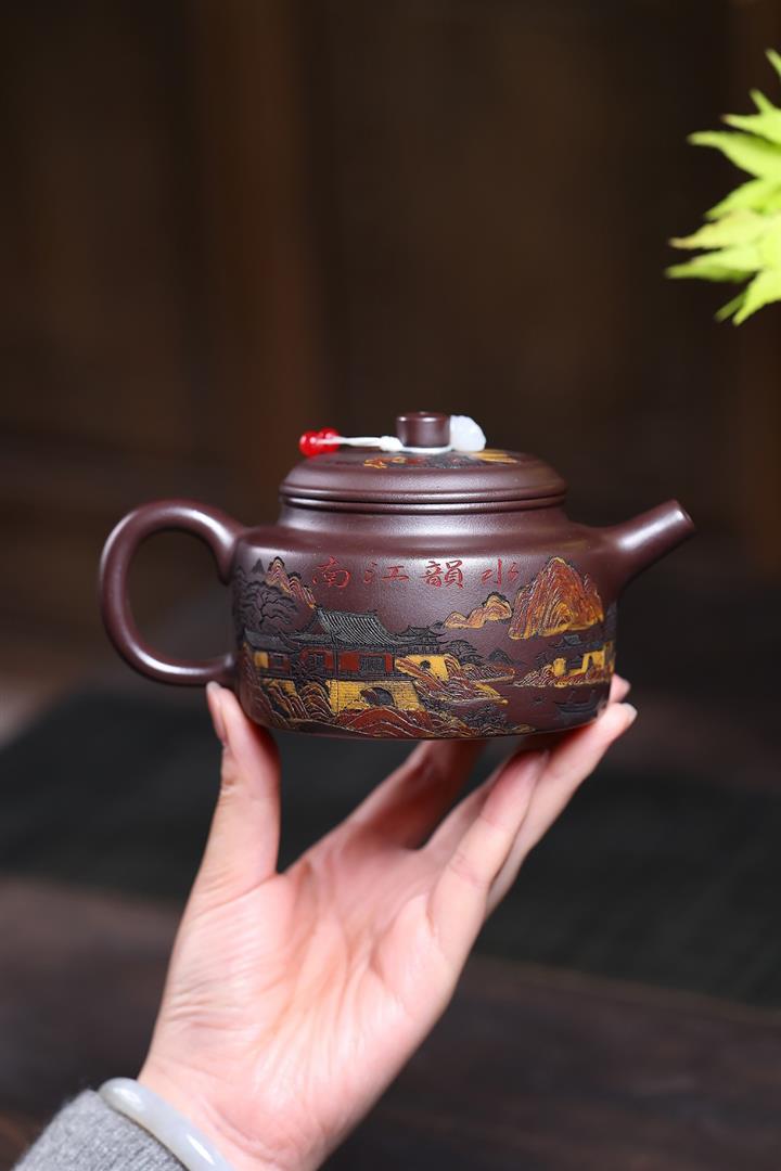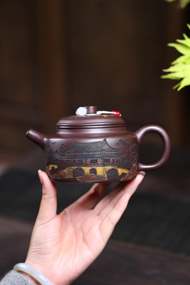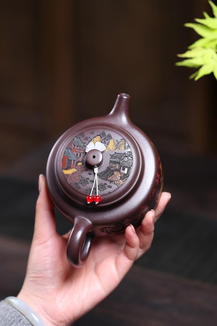 【作品介紹】此款壺形線條流暢,壺把,壺嘴,壺身壹氣呵成栩栩如生,是收藏把玩的好壺,泥料色澤古樸典雅,日久使用,漸露鋒芒,養成變化快,溫潤莊重,用其泡茶,使用的年代久,壺身就溫潤,泡出來的茶湯也就醇郁芳馨。