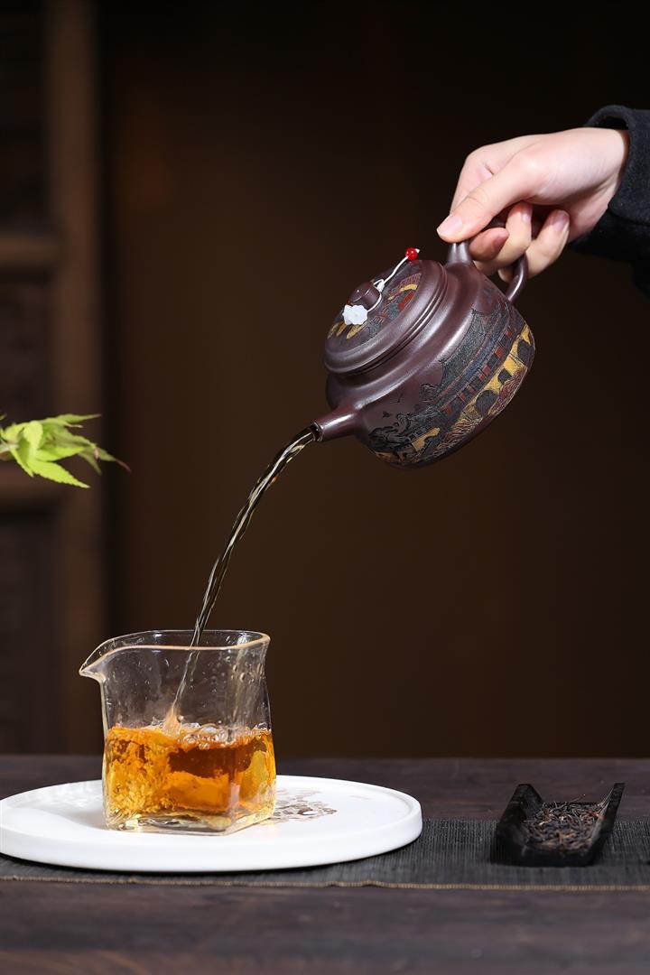 【泥料特點】砂土氣重,似淳實農民,日久使用,漸露鋒芒,養成變化,溫潤莊重。紫砂是壹種雙重氣孔結構的多孔性材質,氣孔微細,密度高。用紫砂壺沏茶,不失原味,且香不渙散,得茶之真香真味。紫砂使用越久,壺身色澤越發光亮照人,氣韻溫雅。紫砂壺長久使用器身會因撫摸擦拭,變得越發溫潤光澤。