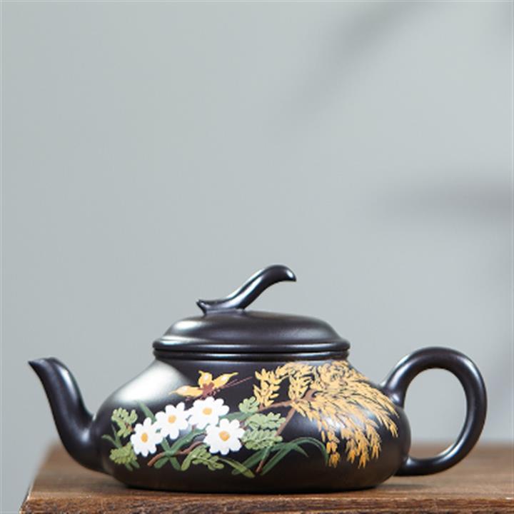230cc原礦黑泥蝶戀花豐收茶壺POT9009