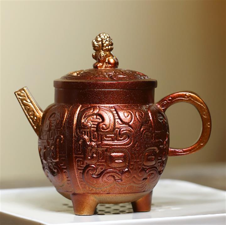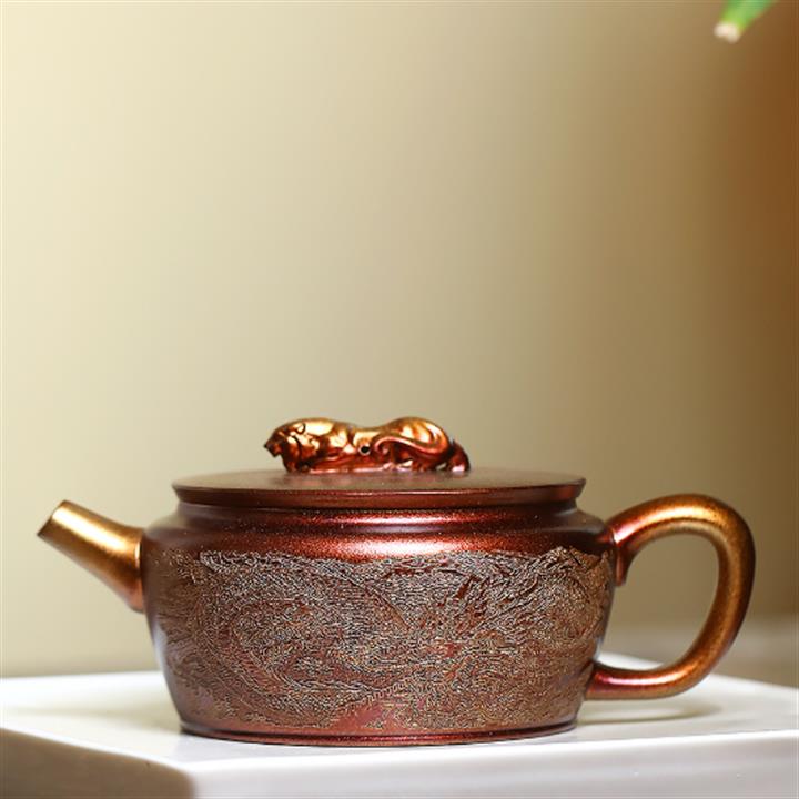 250cc原礦黃金段泥火焰燒焰生牡丹茶壺POT8845