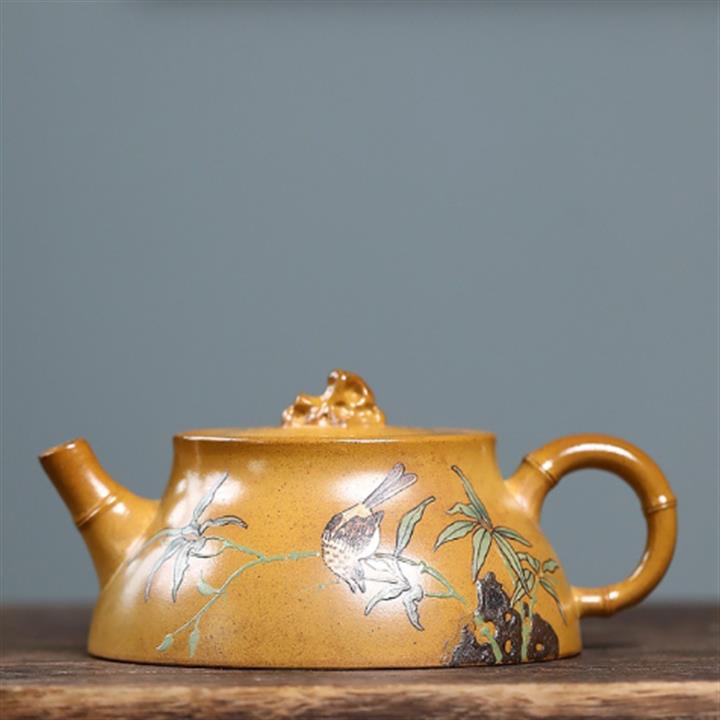 200cc原礦黃金段泥高溫柴燒荷趣韻瓢壺POT8321