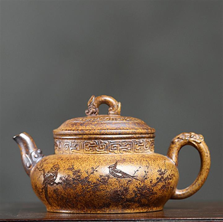 210cc原礦玄鐵石黃太湖石漢瓦泡茶壺POT9602