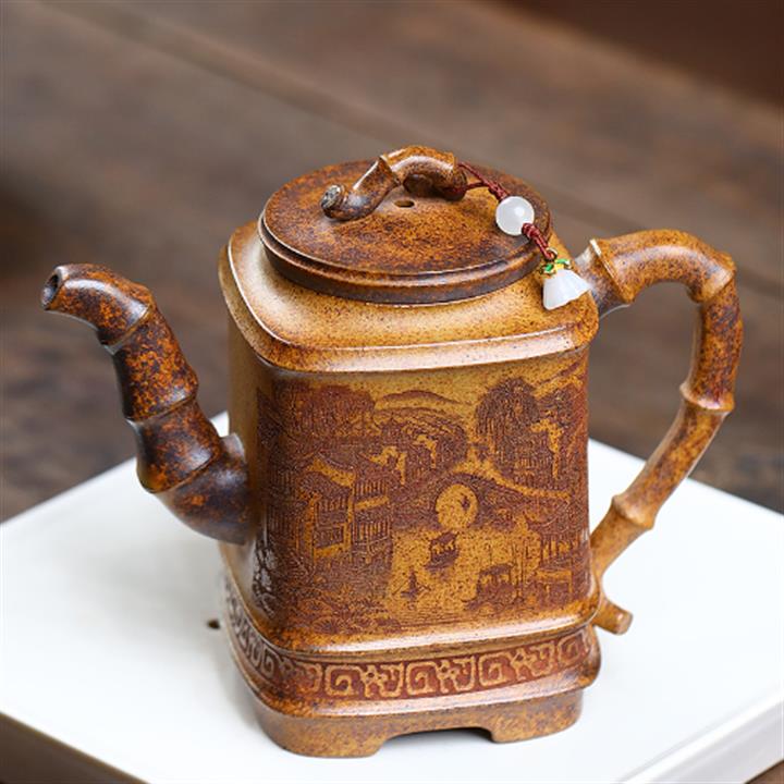 350cc原礦龍骨金砂特高溫四方竹段茶壺POT8637