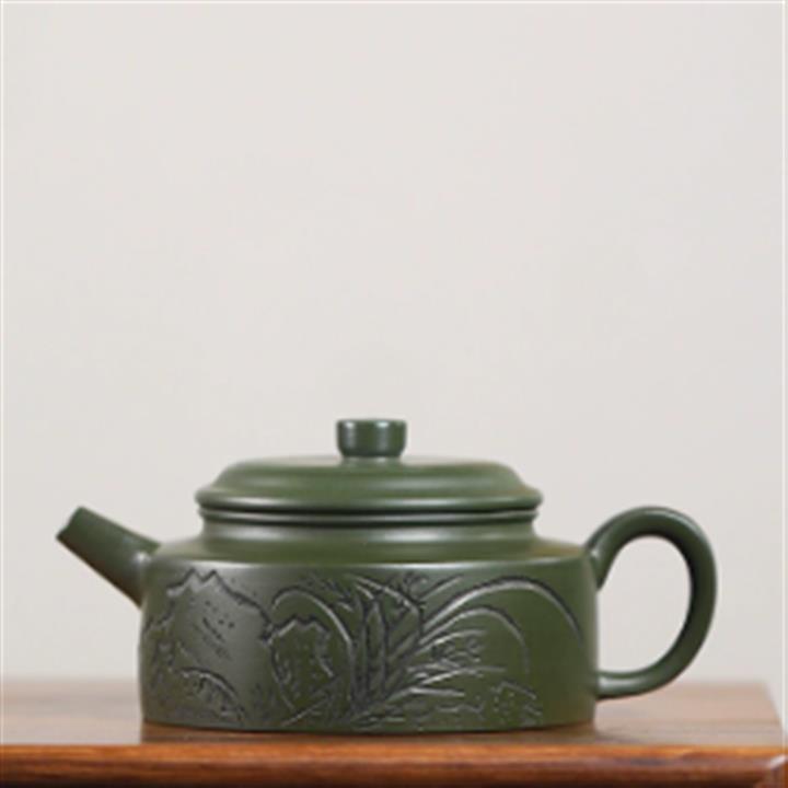 原礦紫泥純手工刻繪子冶石瓢茶壺POT6928