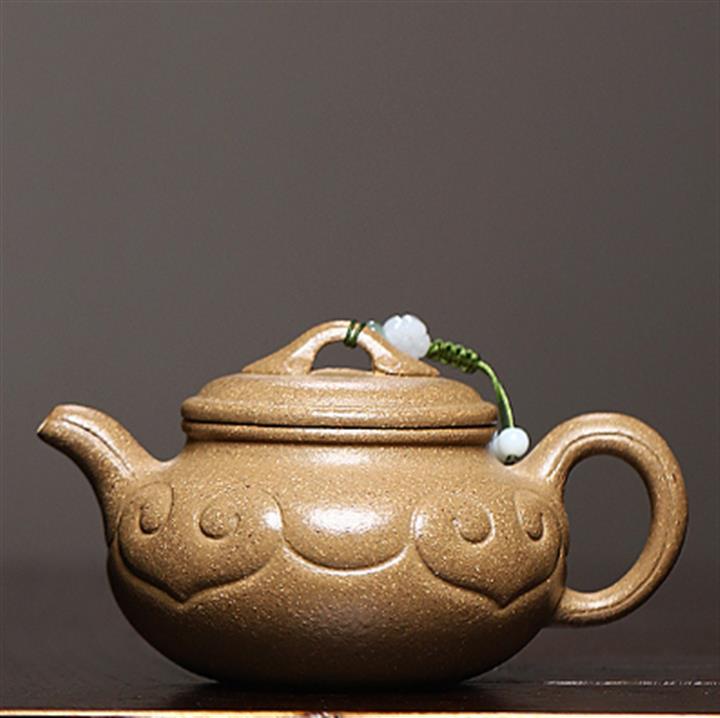 原礦綠泥手工刻繪時來運轉茶壺POT7096