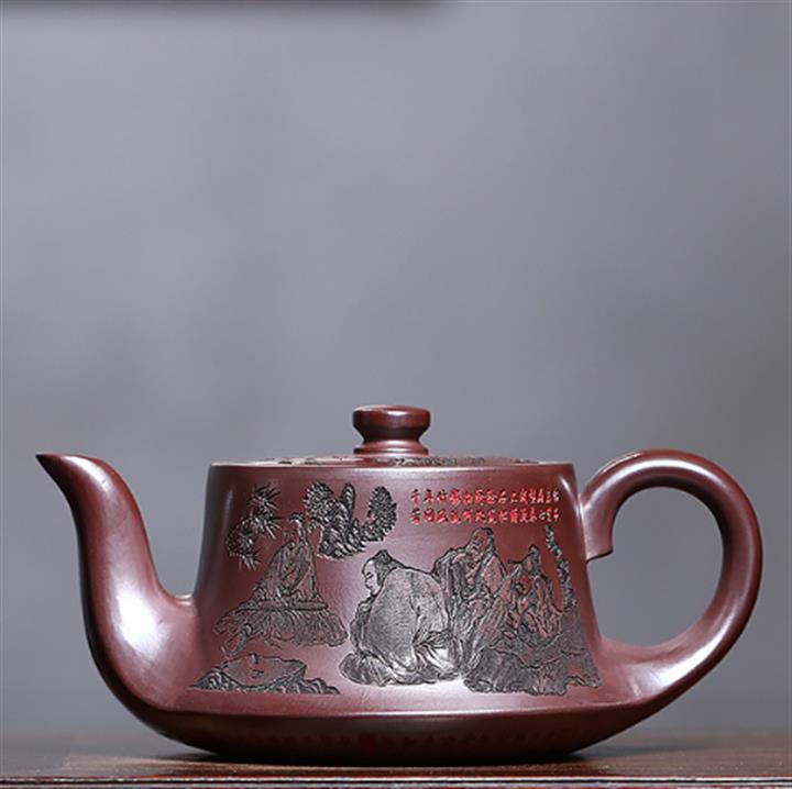 520cc原礦石紅竹林七賢曲壺泡茶壺POT9876