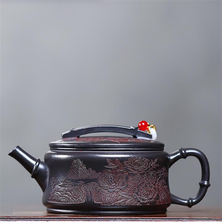220cc原礦紫泥山水高潘壺泡茶壺POT9745