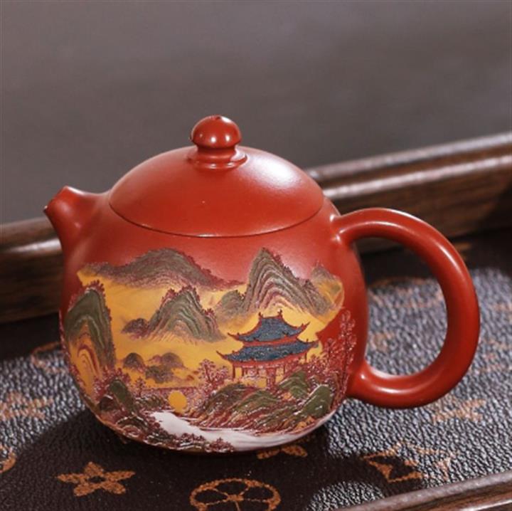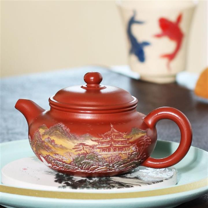 120cc雞血大紅袍彩刻小龍蛋茶壺POT8177