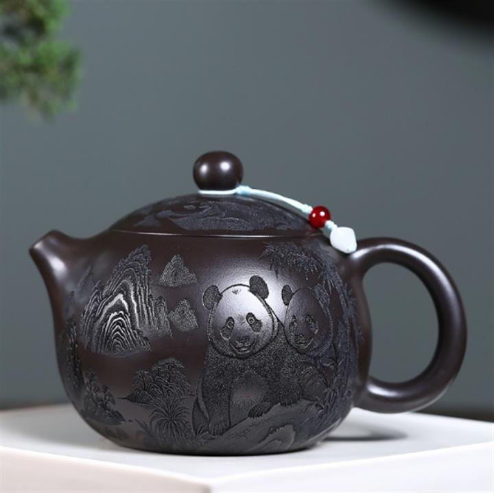 600cc原礦優質石黃泥滿刻熊貓西施茶壺POT9002