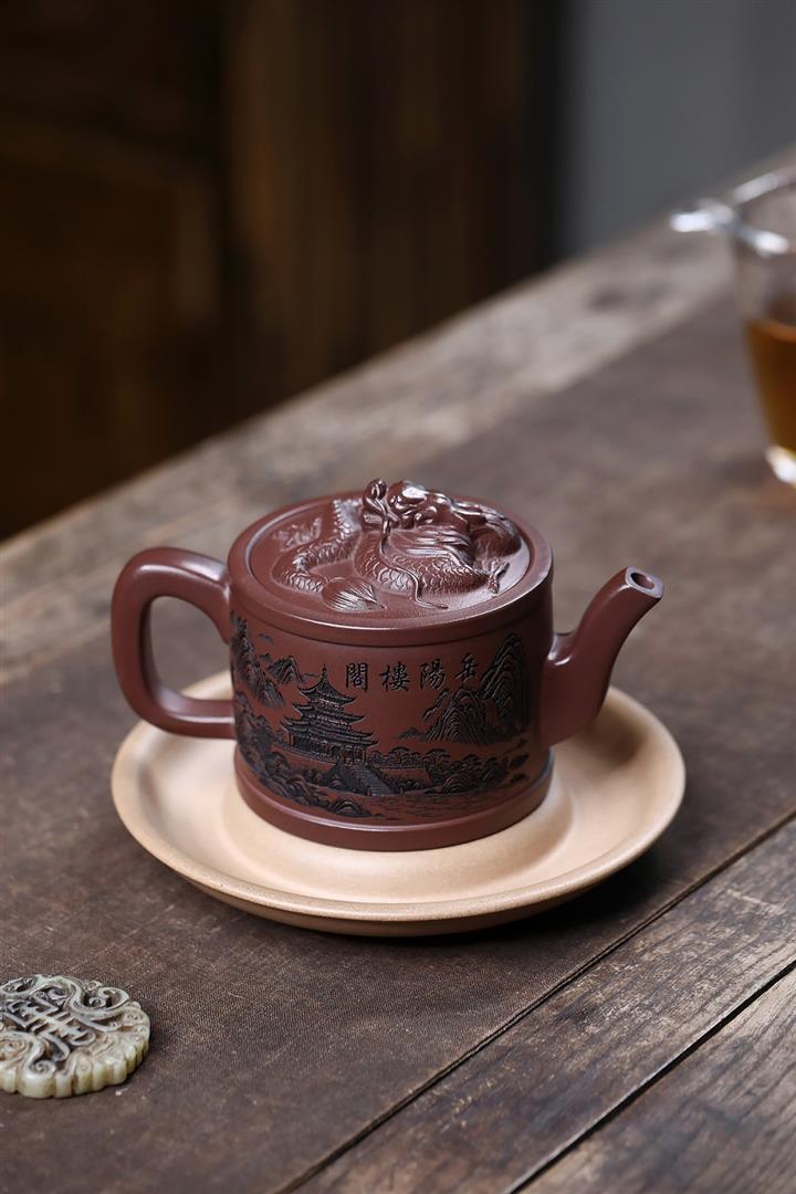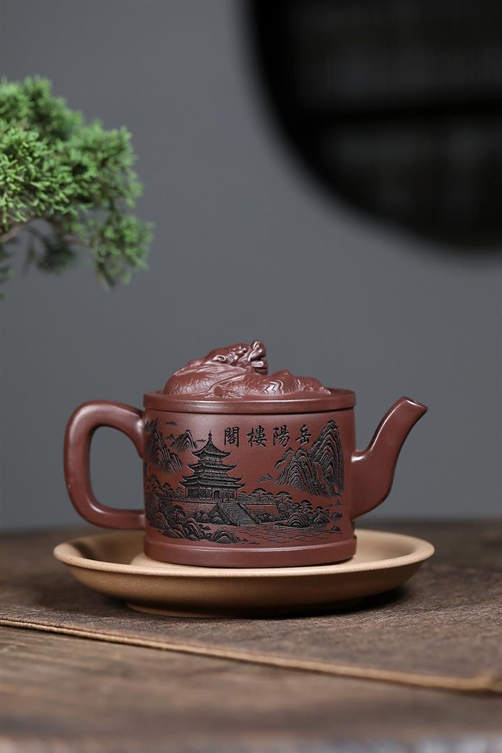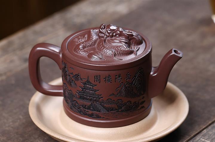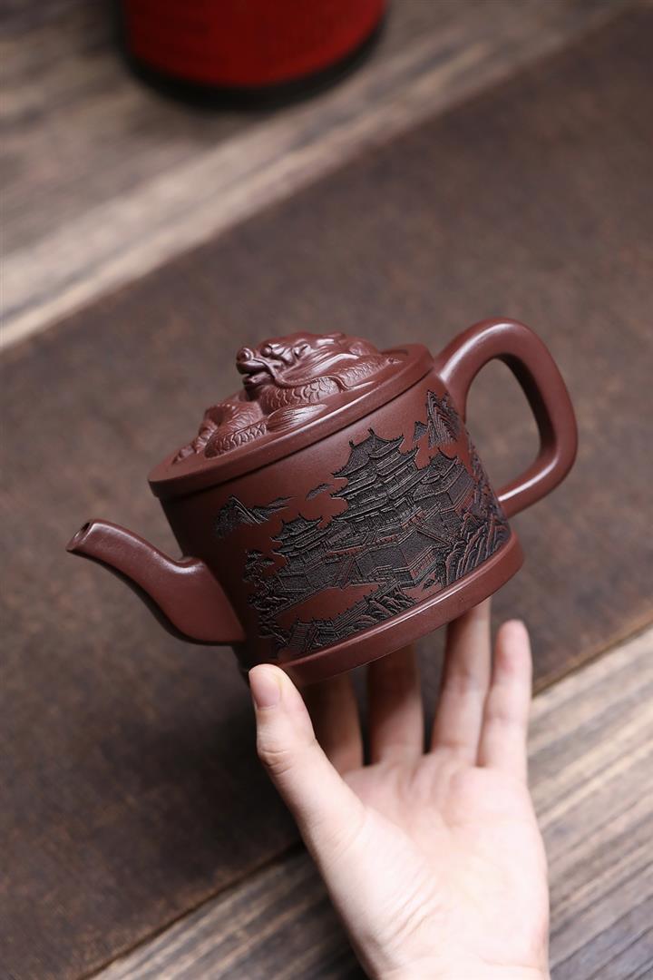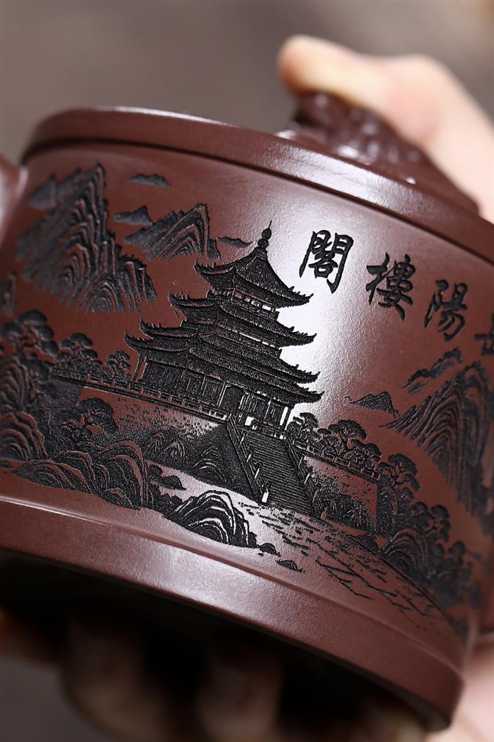 原礦紫泥嶽陽樓閣龍頭漢瓦壺POT7496