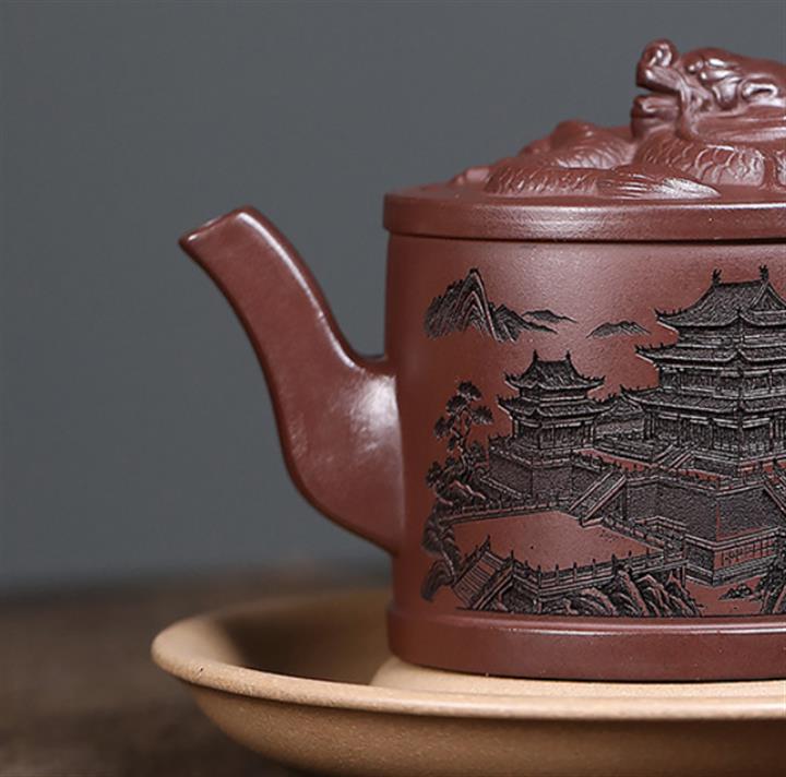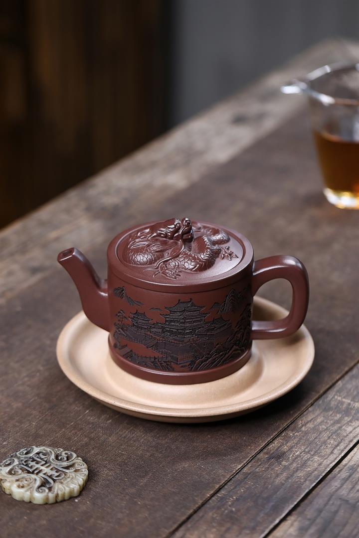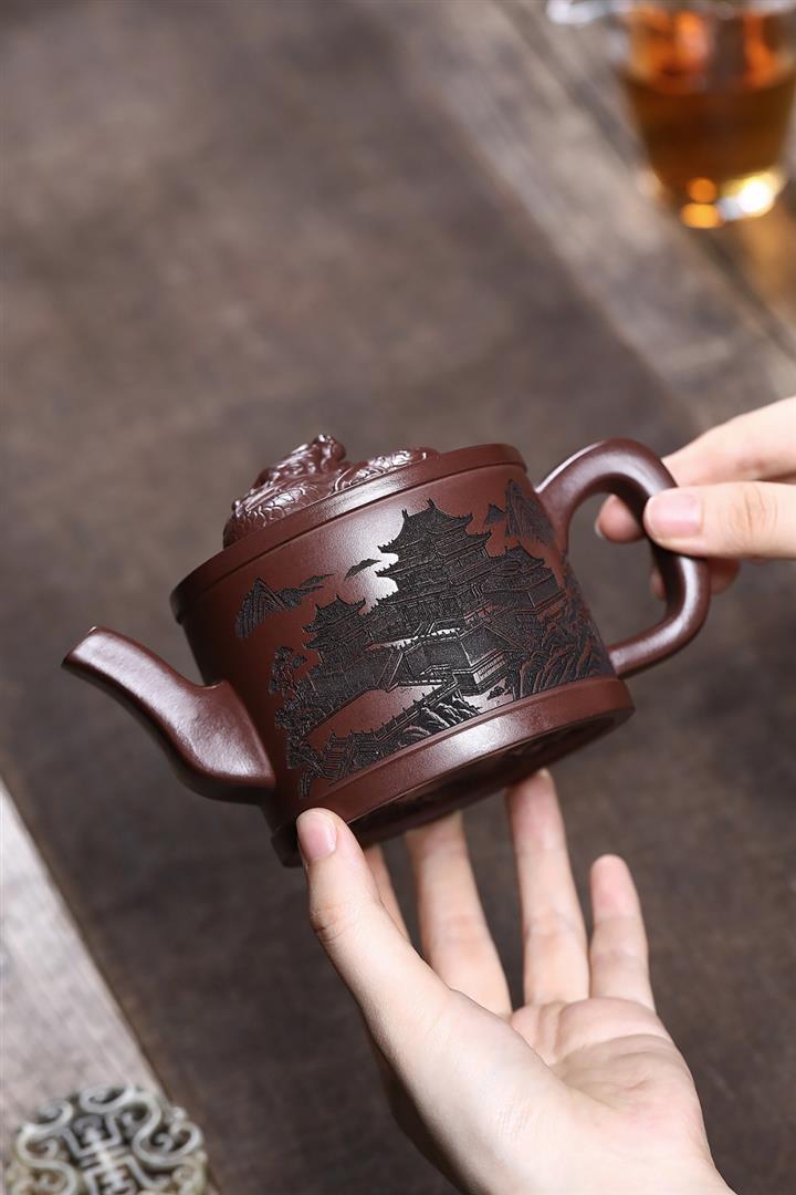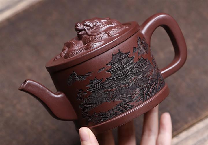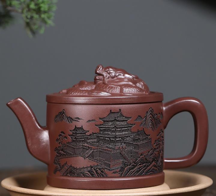 原礦紫泥嶽陽樓閣龍頭漢瓦壺POT7496