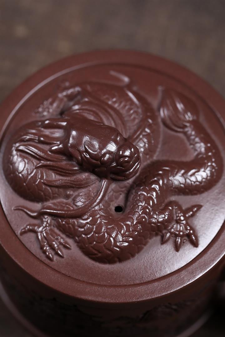 【作品介紹】作品深蘊內涵,做工細致典雅,型用完備,器形端莊穩重,比例協調,結構嚴謹,泥色潤澤。