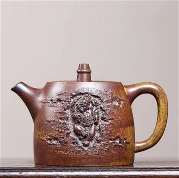 原礦大紅袍五福圖漢瓦茶壺POT7610