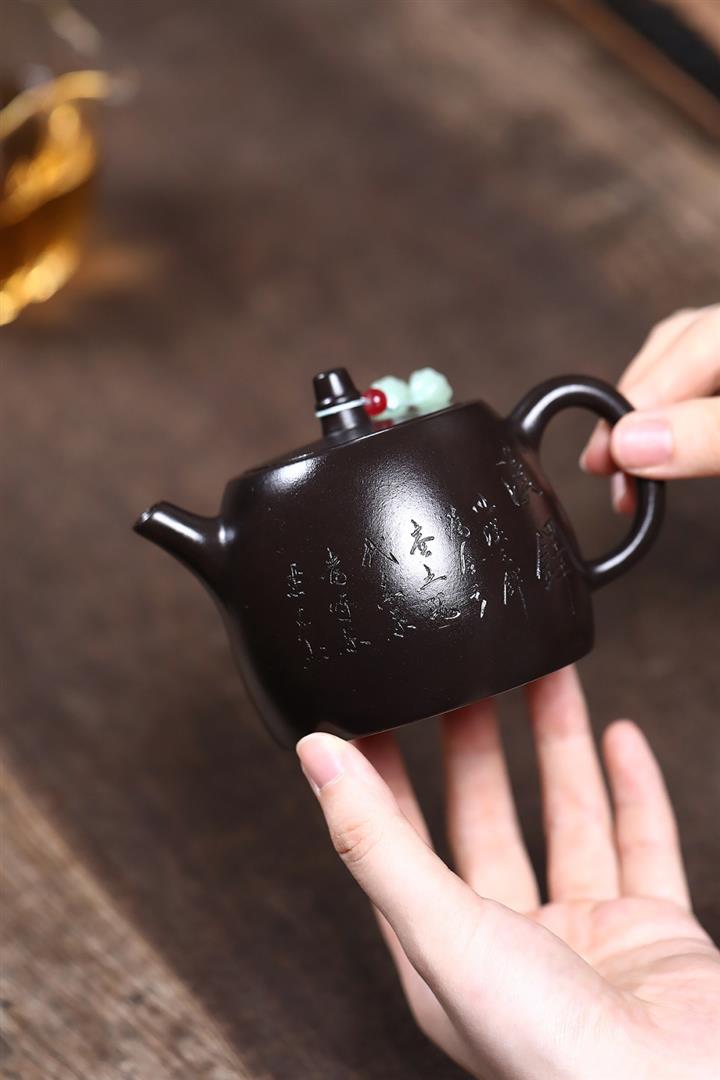 原礦古烏泥滿刻花鳥西施茶壺POT7817