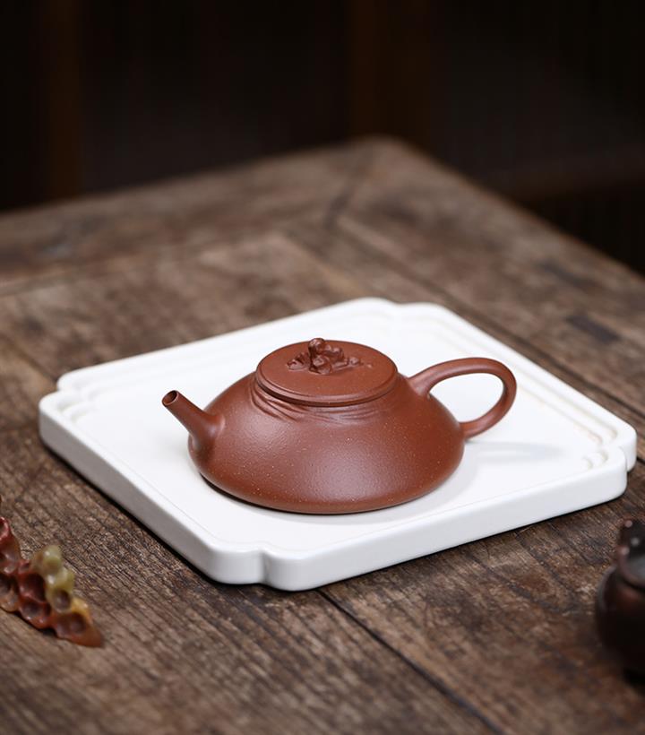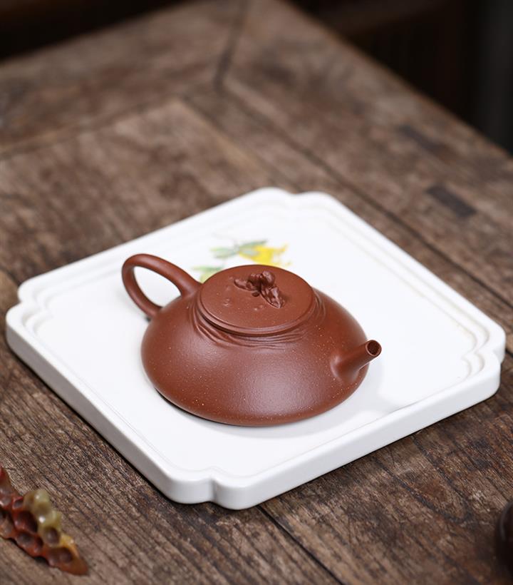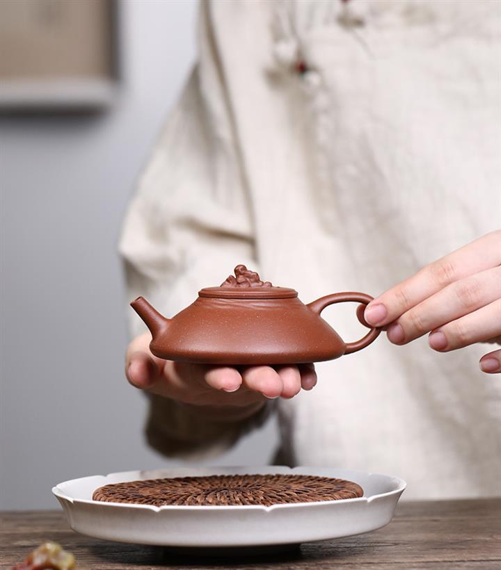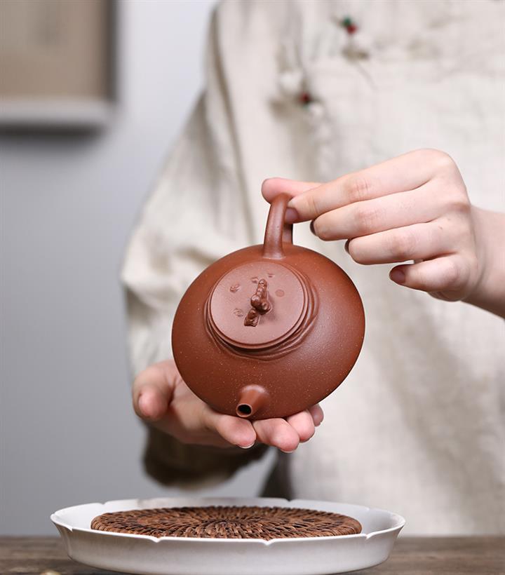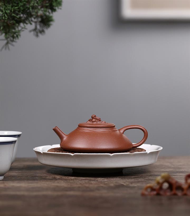 【泥料特點】砂土氣重,似淳實農民,日久使用,漸露鋒芒,養成變化,溫潤莊重。紫砂是壹種雙重氣孔結構的多孔性材質,氣孔微細,密度高。用紫砂壺沏茶,不失原味,且香不渙散,得茶之真香真味。紫砂使用越久,壺身色澤越發光亮照人,氣韻溫雅。紫砂壺長久使用器身會因撫摸擦拭,變得越發溫潤光澤。