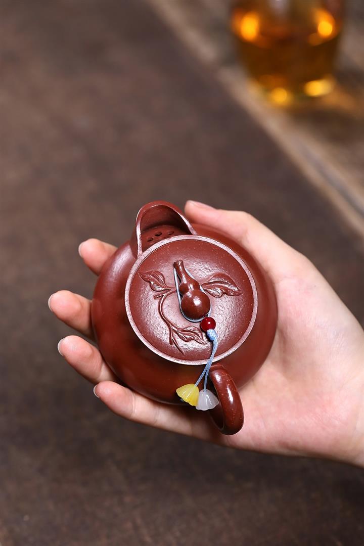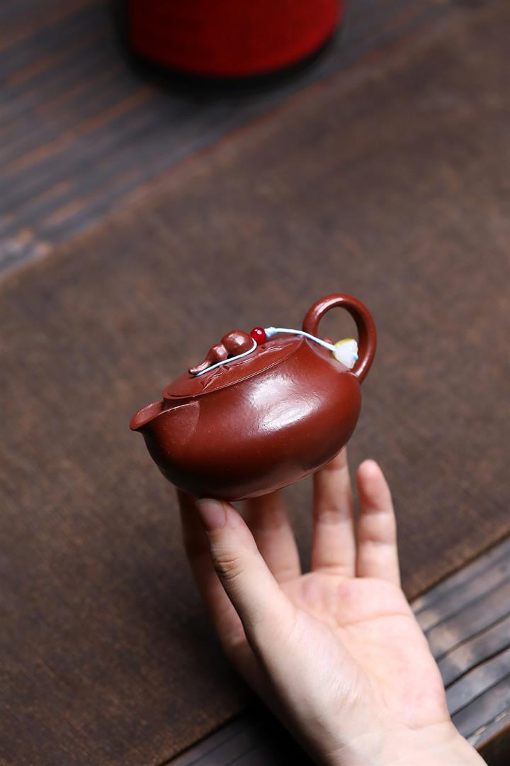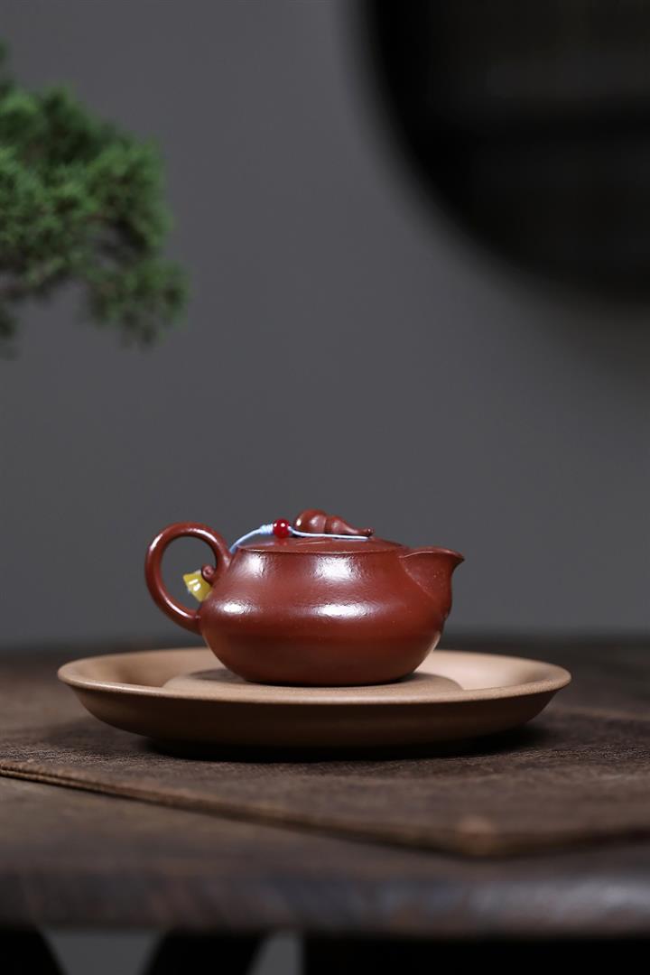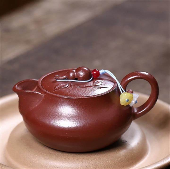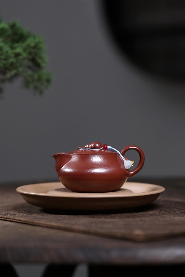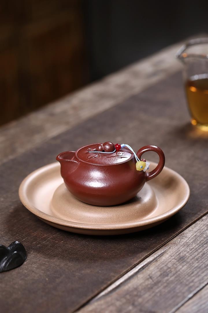 皺皮朱泥小扁櫻紫砂壺POT5940
