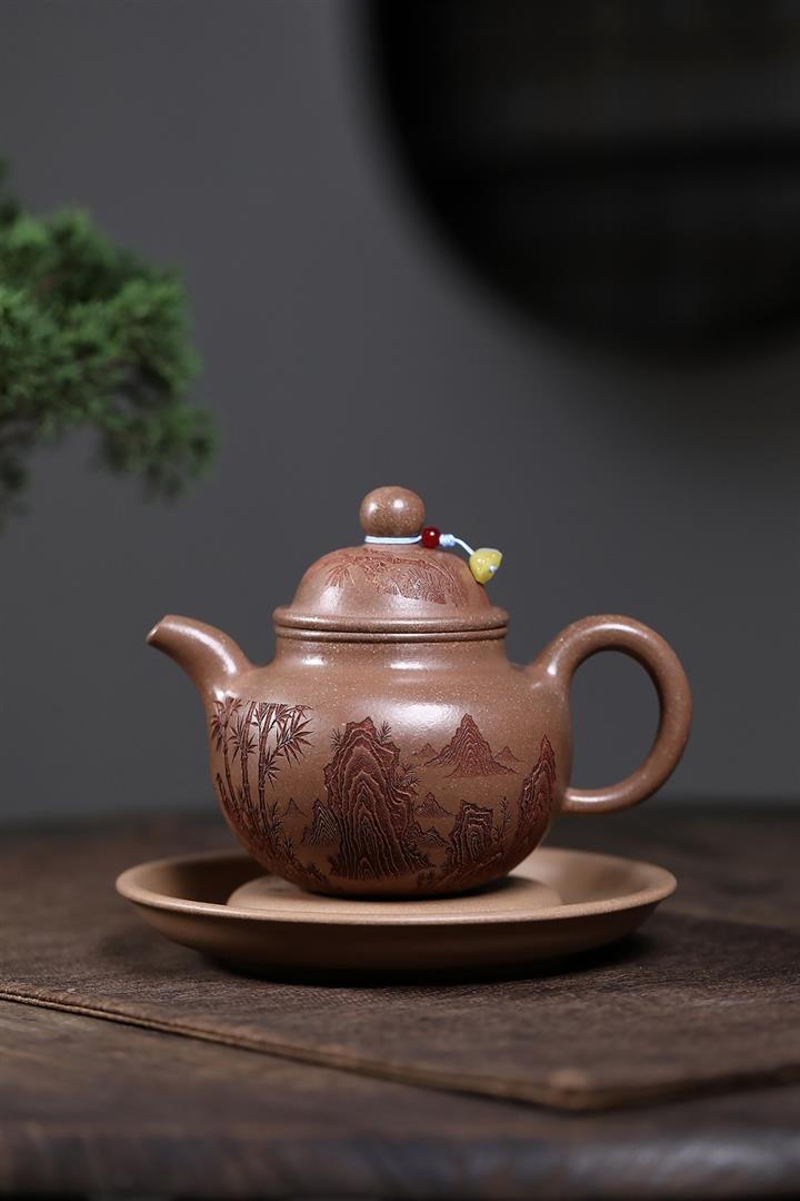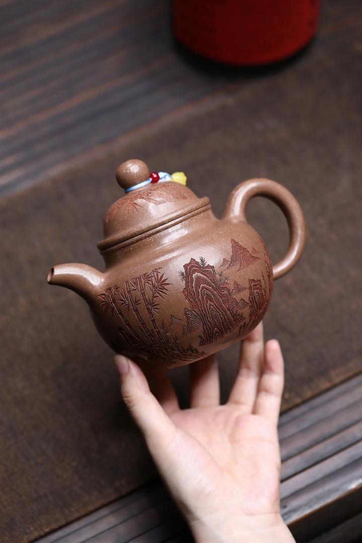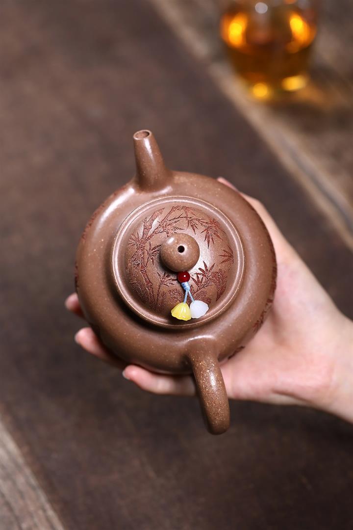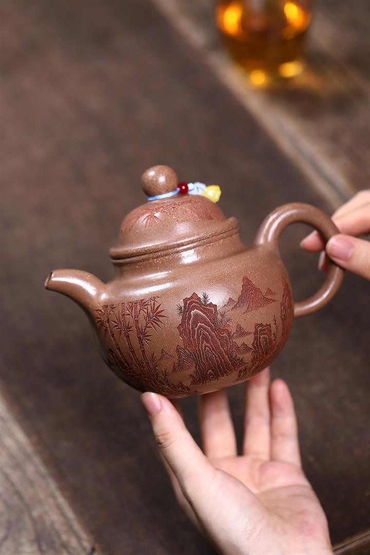 【作品介紹】此款壺形線條流暢,壺把,壺嘴,壺身壹氣呵成栩栩如生,是收藏把玩的好壺,泥料色澤古樸典雅,日久使用,漸露鋒芒,養成變化快,溫潤莊重,用其泡茶,使用的年代久,壺身就溫潤,泡出來的茶湯也就醇郁芳馨。