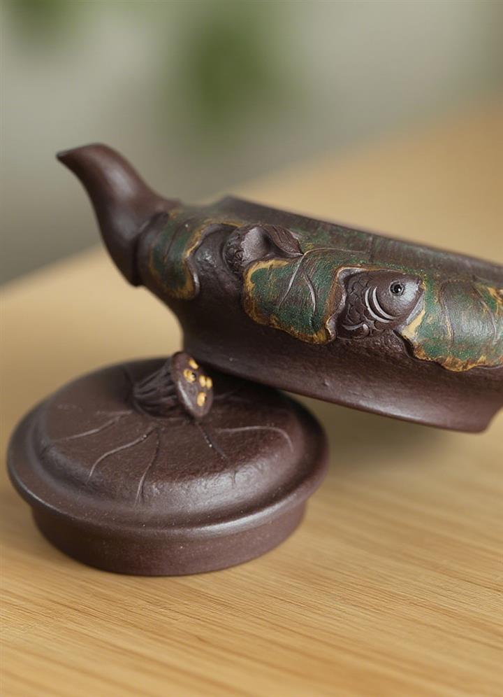 150cc原礦紫泥連年有余荷趣茶壺POT7954