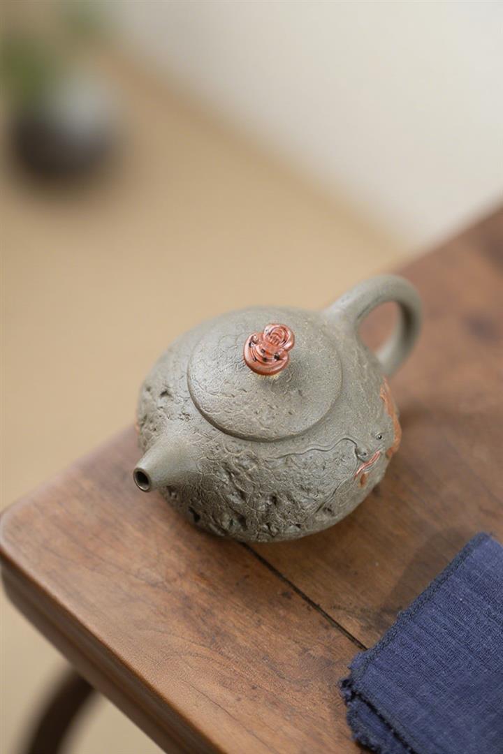 200cc原礦龍骨金砂祥雲竹節茶壺POT8978