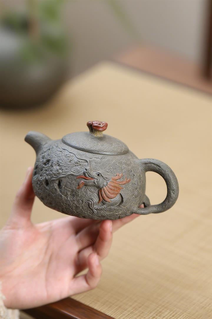 260cc原礦龍骨金砂泥繪葡萄容天茶壺POT8973