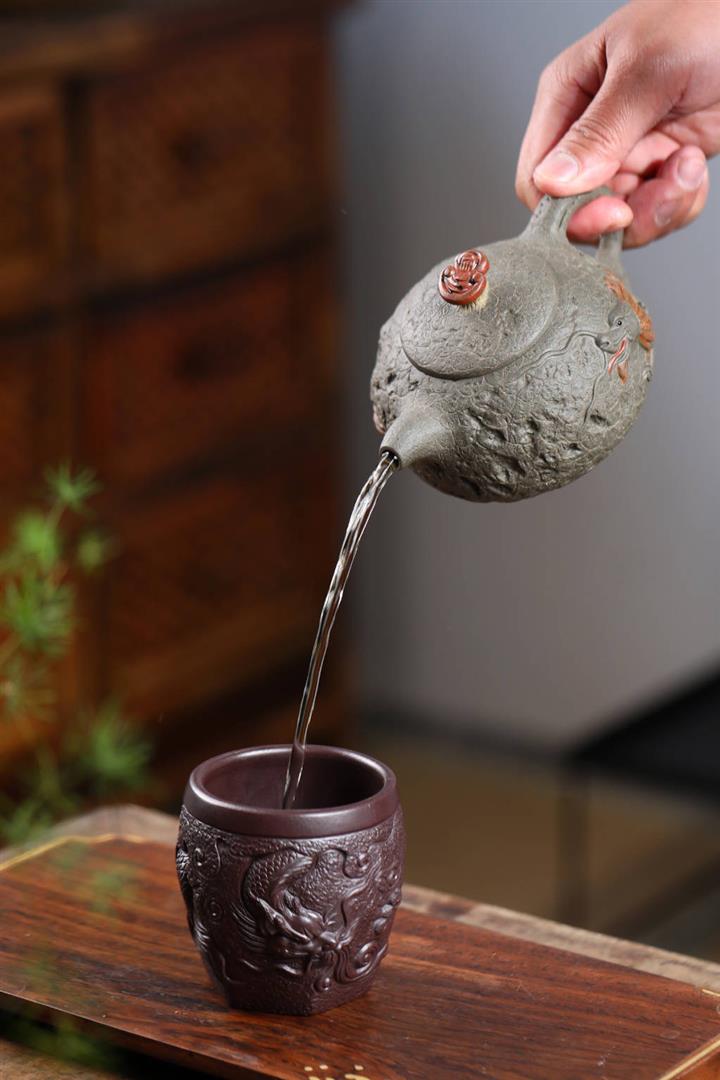 280cc原礦墨綠泥隱龍供春茶壺POT7955