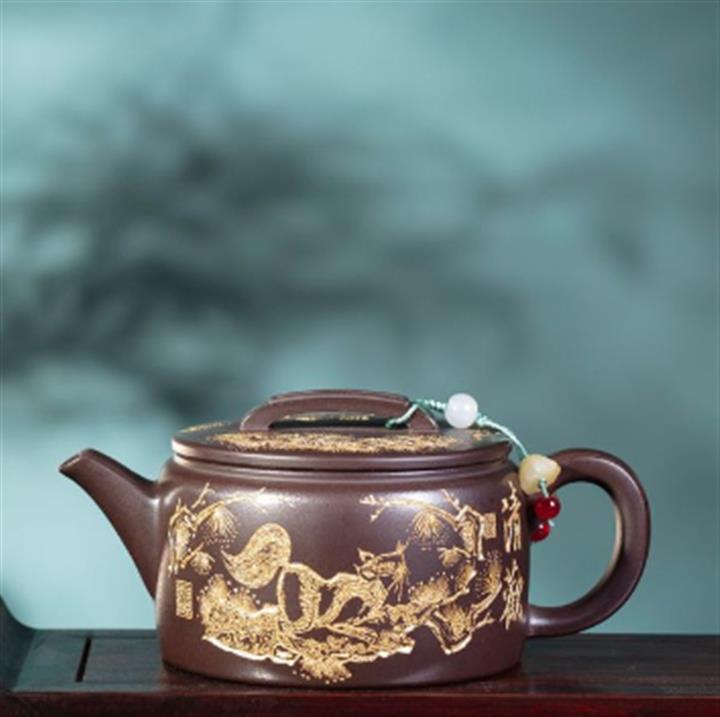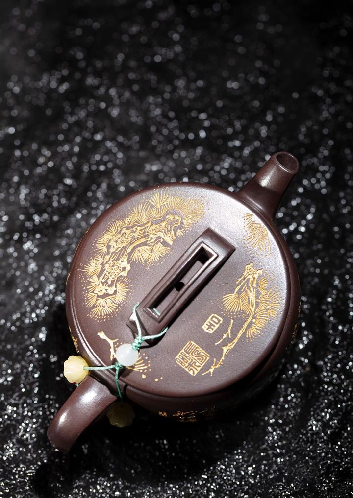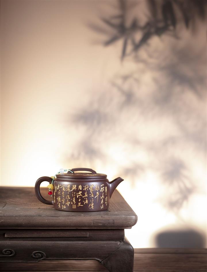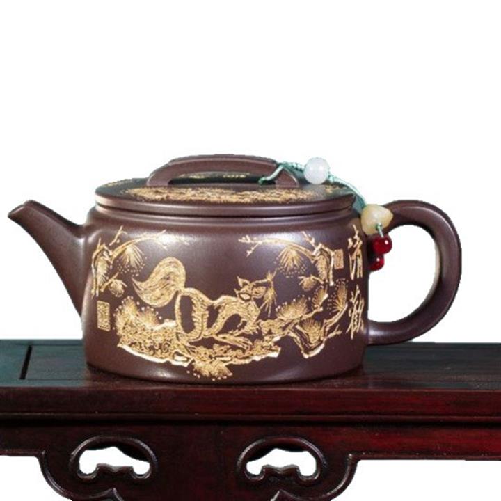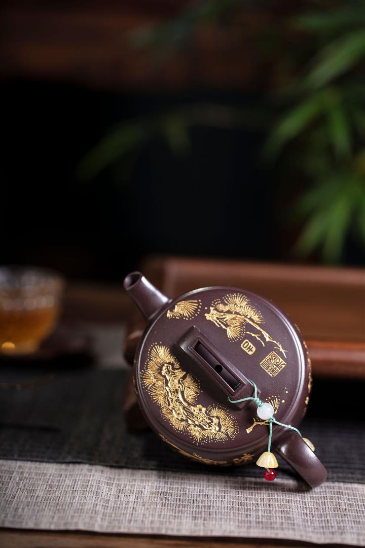 200cc原礦紫泥金刻漢瓦茶壺POT8098