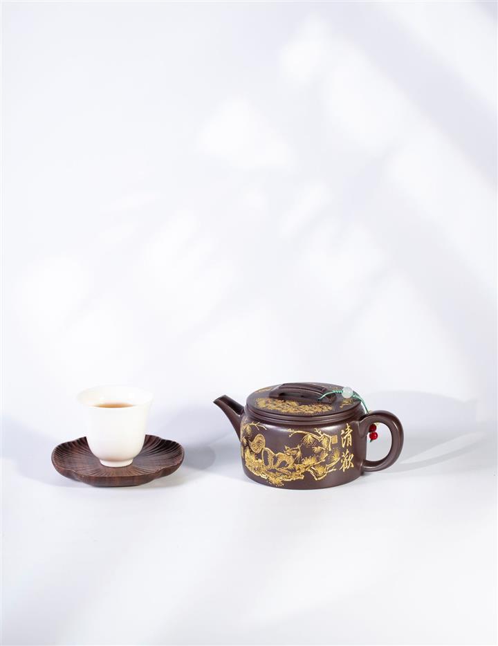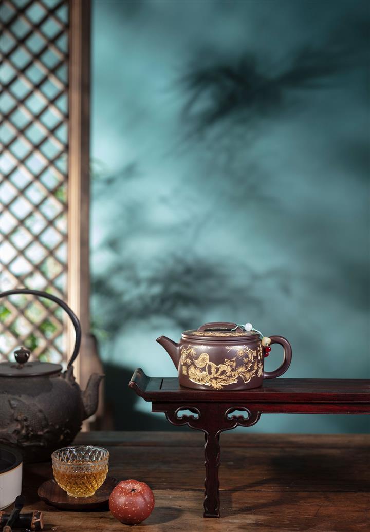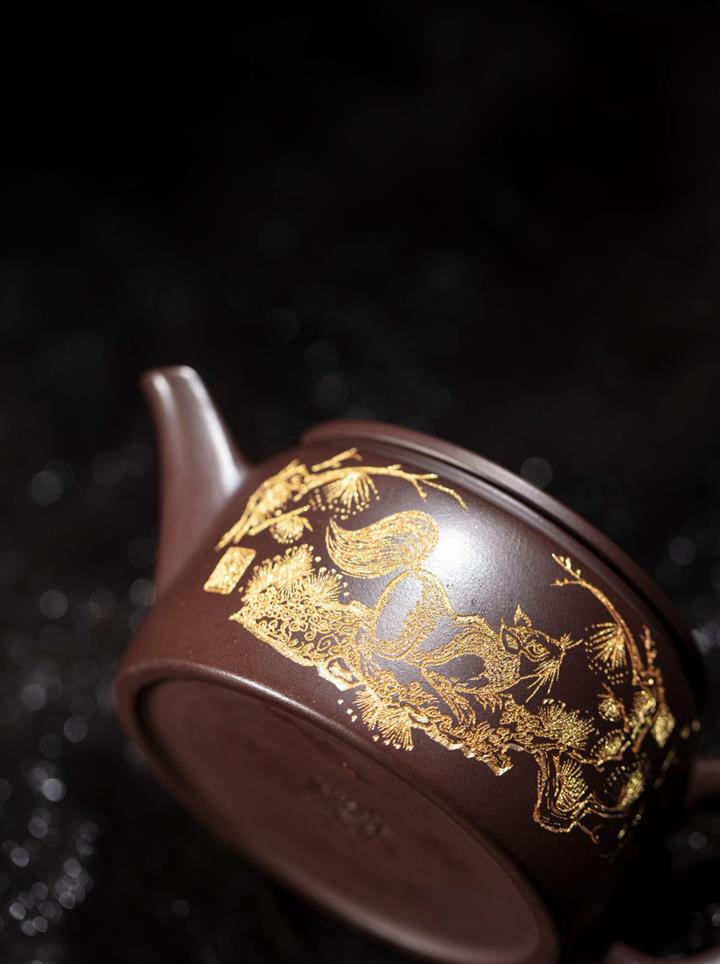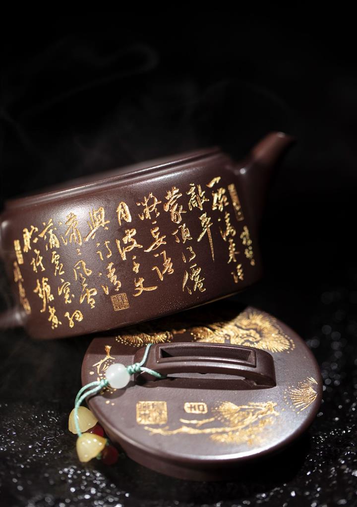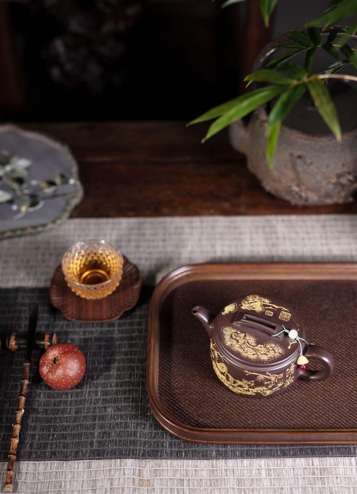 200cc原礦紫泥金刻漢瓦茶壺POT8098