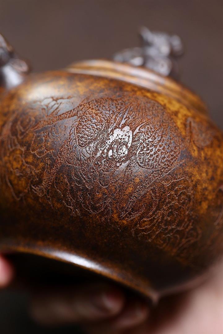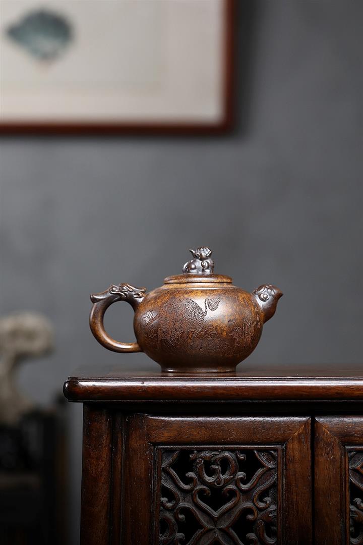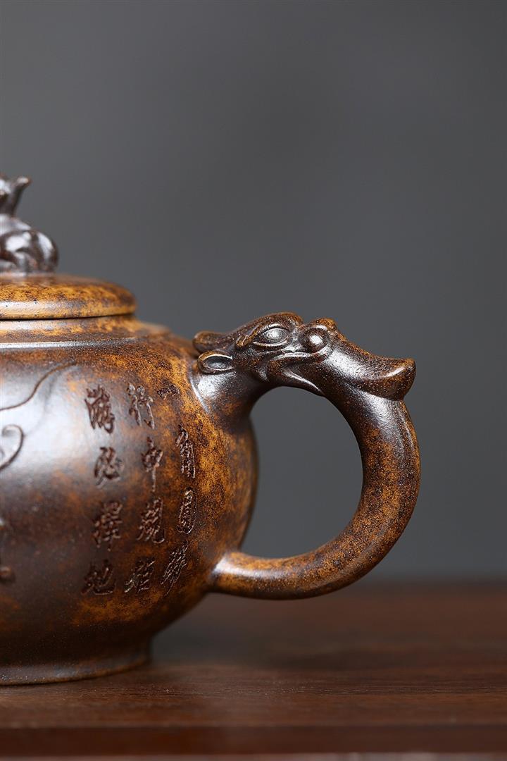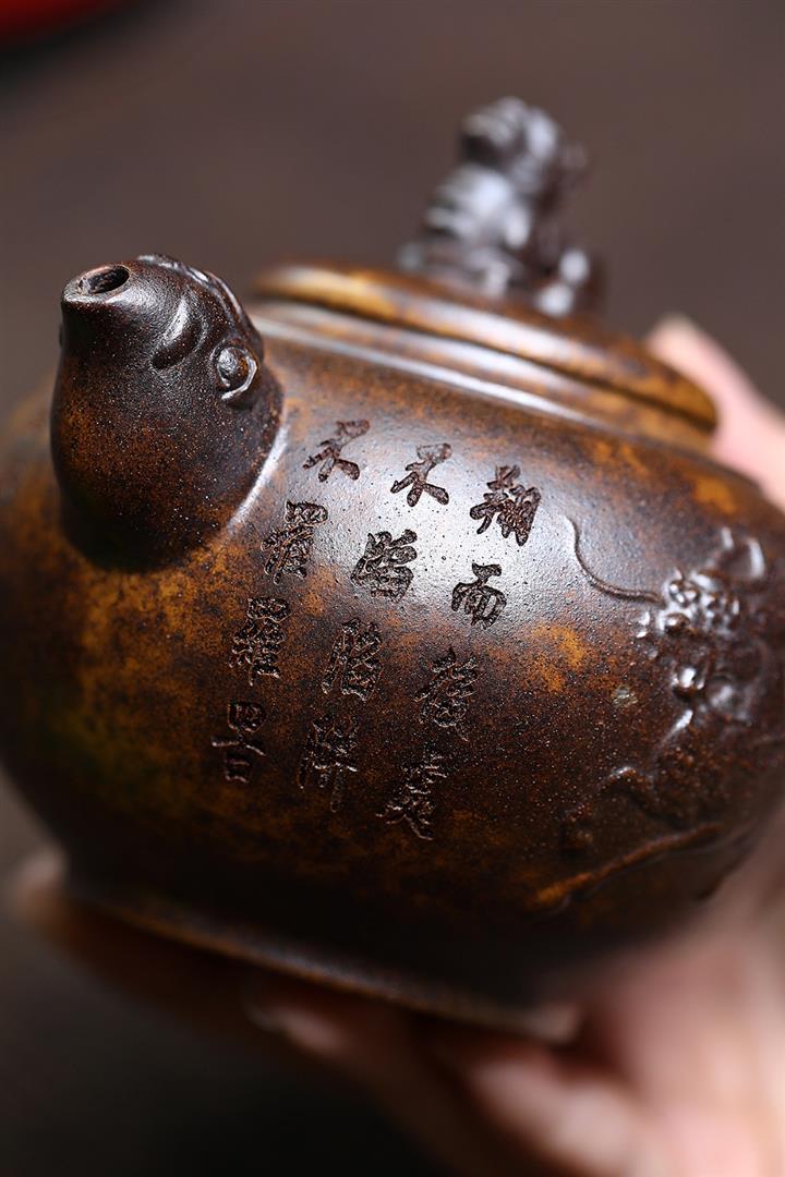 原礦段泥柴燒刻繪德鐘茶壺POT7864
